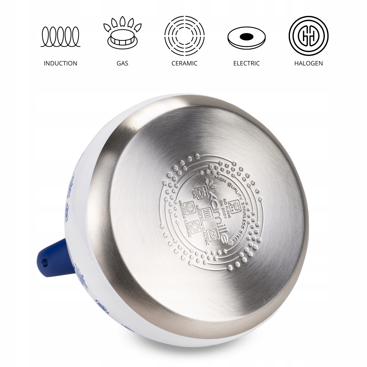 Чайник Kamille можна використовувати на традиційній газовій плиті, а також на індукційних, електричних і керамічних плитах, що робить його надзвичайно універсальним і підходить майже для будь-якої кухні.