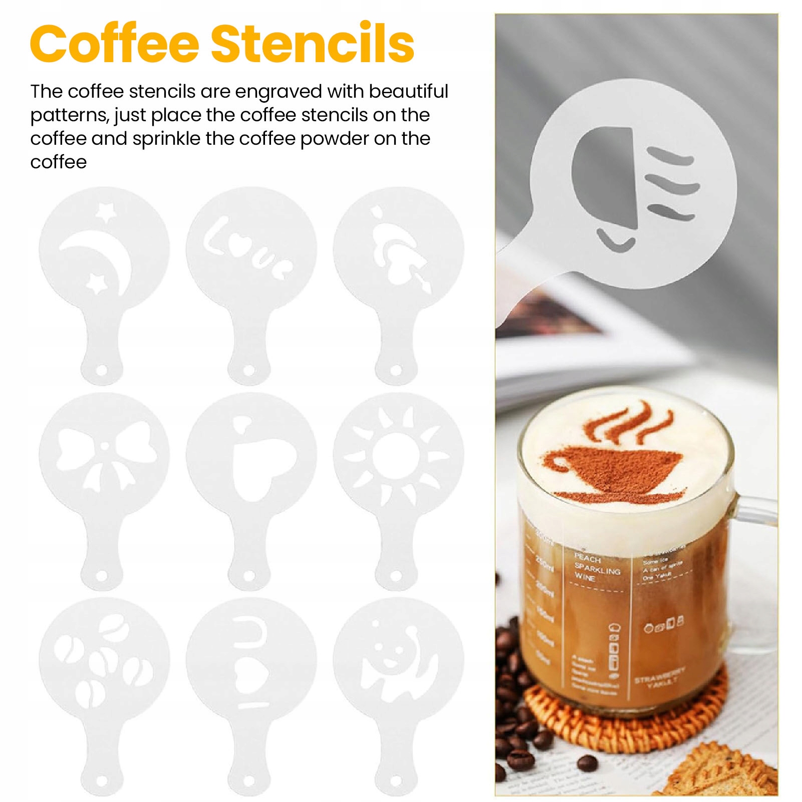 2. Кавові трафарети: на трафаретах для малювання кави вигравірувано красиві візерунки, просто помістіть трафарети для малювання кави на каву та посипте кавовим порошком.
