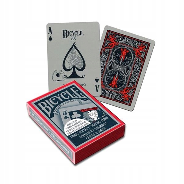 Ідеально підходить для гри в покер і фокуси. Набір із 54 карток (2 джокери та інформаційна картка). Картки вищої якості, ніж стандартна спинка Rider. Зворотний бік карток унікальний, червоно-чорний графічний дизайн світиться в темряві. На лицьовій стороні карток зображені химерні та моторошні обличчя. Велосипед Tragic Royalty може стати ідеальним подарунком для геймерів, колекціонерів, фокусників або навіть дітей для вечірньої сімейної гри!