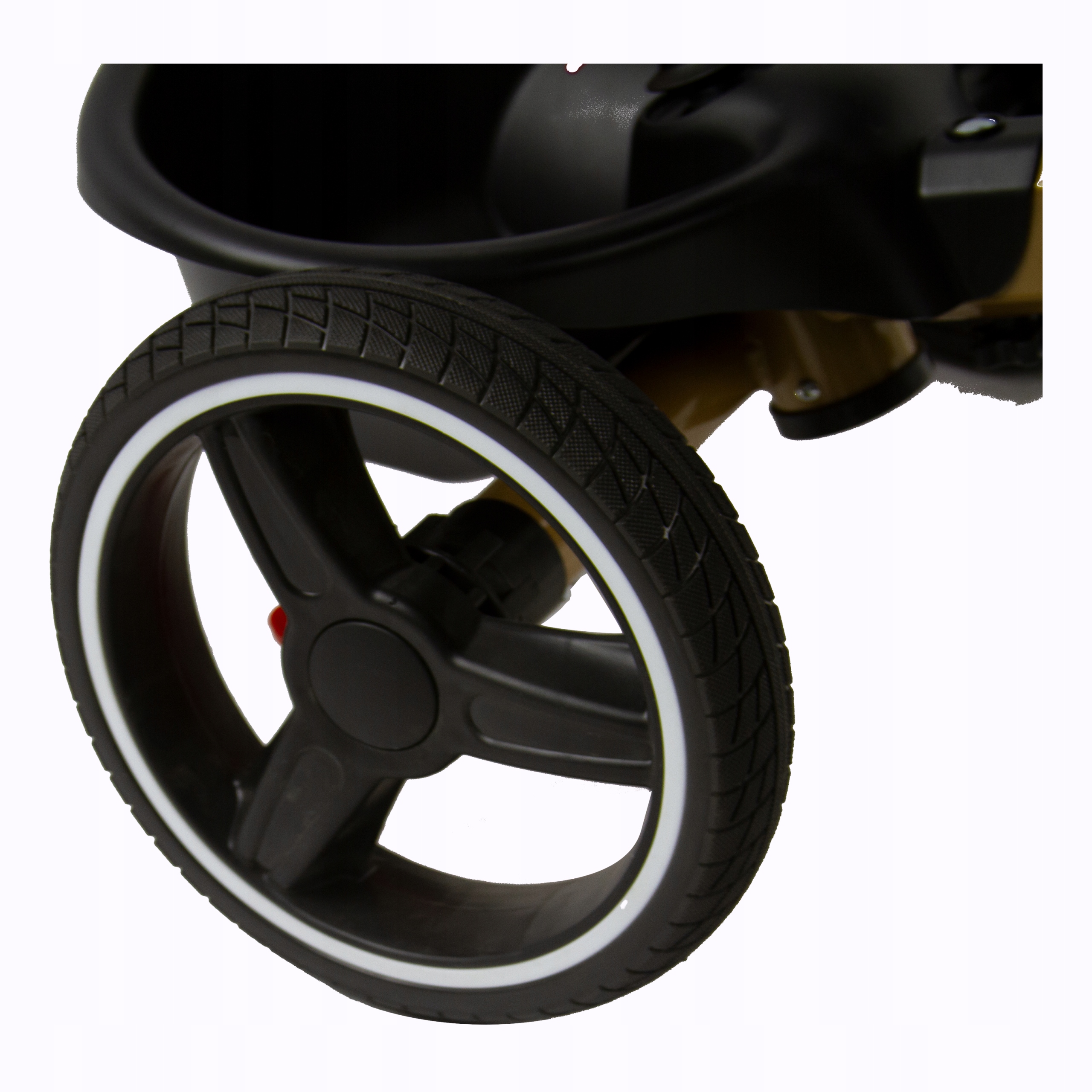 - Найбільші гумові колеса на підшипниках, передні 30 см і задні 26 см забезпечують повний комфорт водіння.