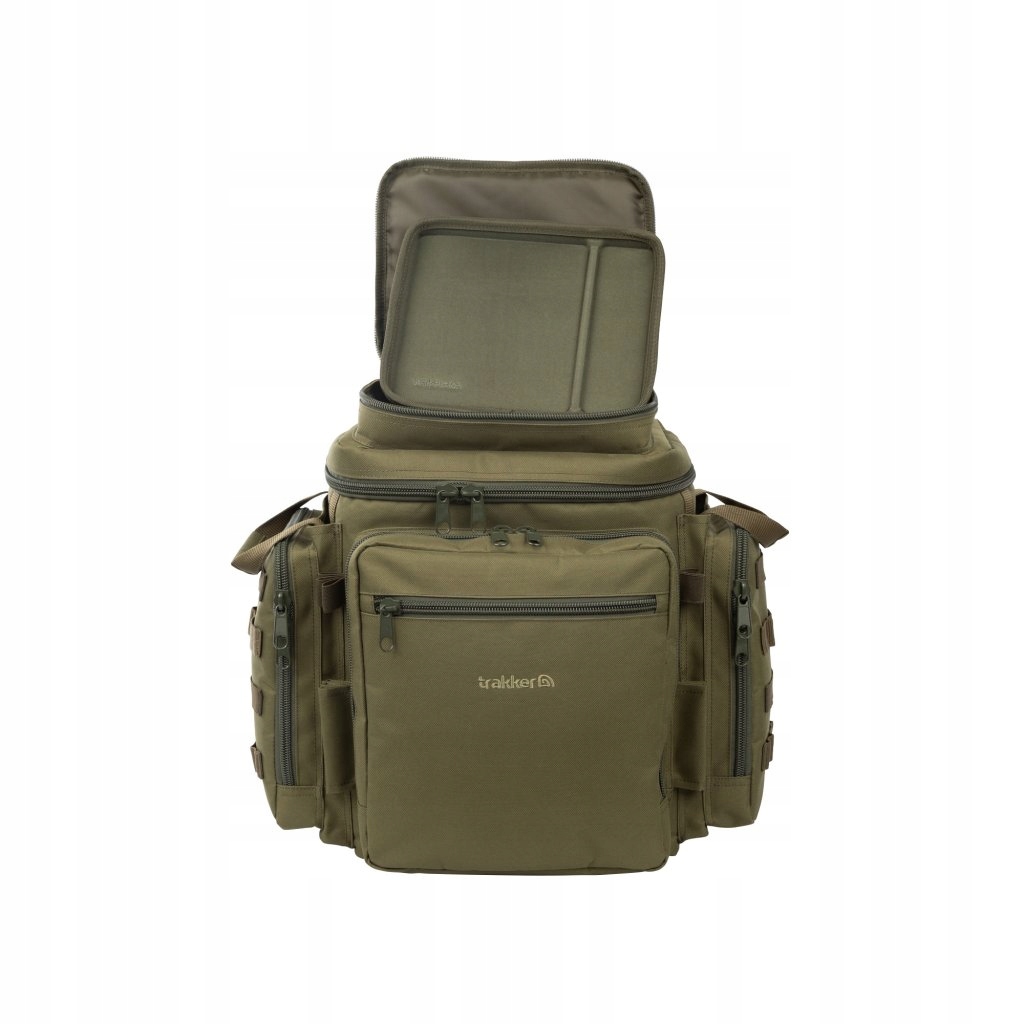 Верхня кишеня містить знімну підставку EVA із вбудованим кутовим магнітом. Завдяки магніту лоток надійно тримає ваші прикраси на лідерах. Рюкзак має не лише велику передню кишеню на блискавці для скриньок і аксесуарів, а й великі посилені внутрішні та бічні кишені на блискавці, які забезпечують додатковий простір для зберігання. Еластичні петлі з обох сторін дозволяють легко прикріпити вилки та тримати ваше спорядження завжди під рукою.