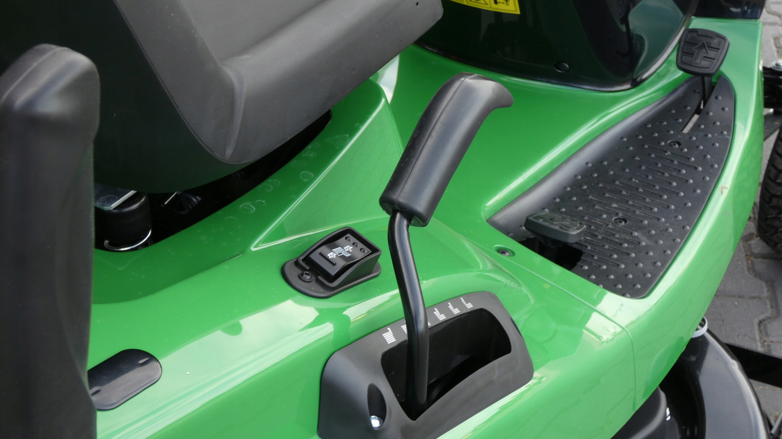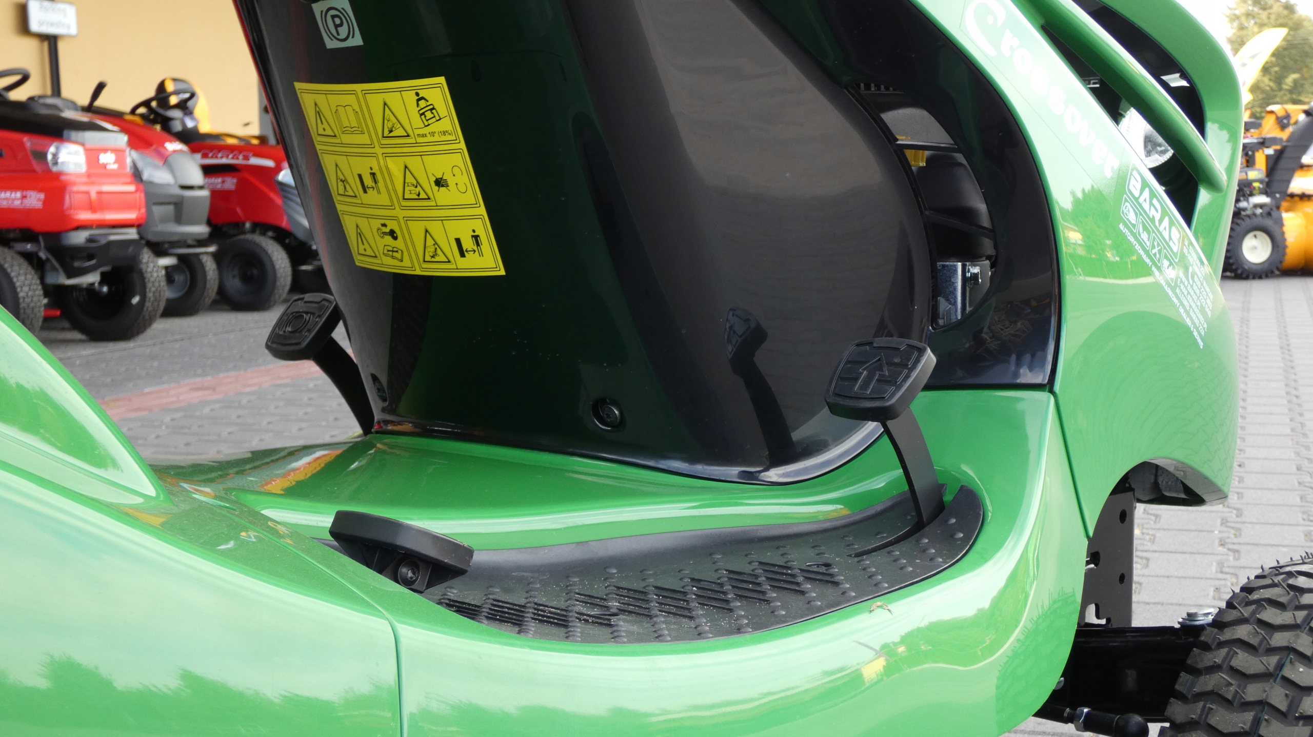 Відмінності між машинами полягають у кольорі та ширині ріжучого блоку. Пропонована модель має ширину зрізу до 103 см! Інші параметри, такі як потужність двигуна, коробка передач і рама, залишаються незмінними.