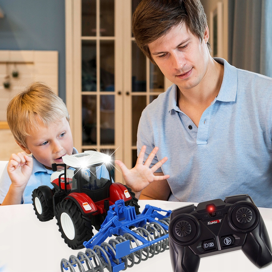 Завдяки великому розміру дитина може розважитися без будь -яких перешкод, граючи різні сцени та сценарії. Трактор дистанційно контролюється, імітує справжню машину для роботи на фермі та з посівами.