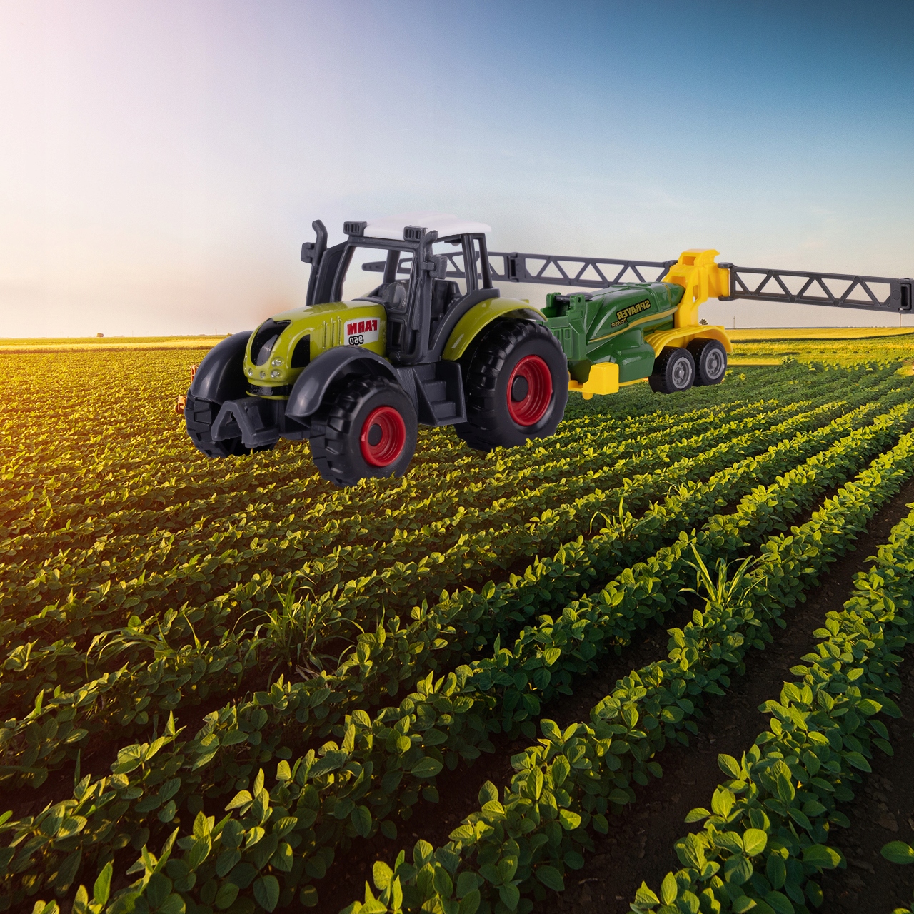 Фантастичний набір сільськогосподарських машин для маленького фаната фермерства. Ви можете розважатися багатьма способами з реалістично відтвореними машинами. Заготівля зернових, звернення сіна чи перевезення деревини? Завдяки машинам, прикріпленим до трактора, ваш маленький фермер зможе їздити по своїй фермі, виконуючи повсякденну роботу. У набір входять 2 комбайни і 3 трактори з сільськогосподарською технікою, вантажівка і 6 фігурок домашніх тварин. Набір дозволяє різноманітно і розвиваюче грати.