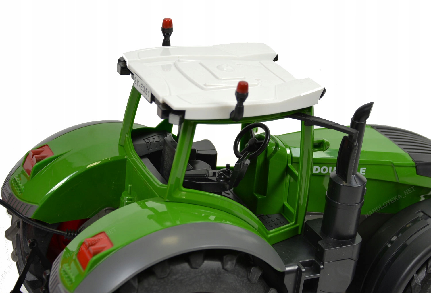 Трактор видає звуки переднього та заднього ходу, сигнали повороту та гудок. Рух вперед і назад, а також підйом і опускання причепа керується дистанційним керуванням.
