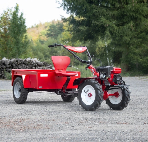 Цільні колеса мають діаметр 55 см і забезпечують хороше зчеплення. Крім того, причіп оснащений практичним сидінням.