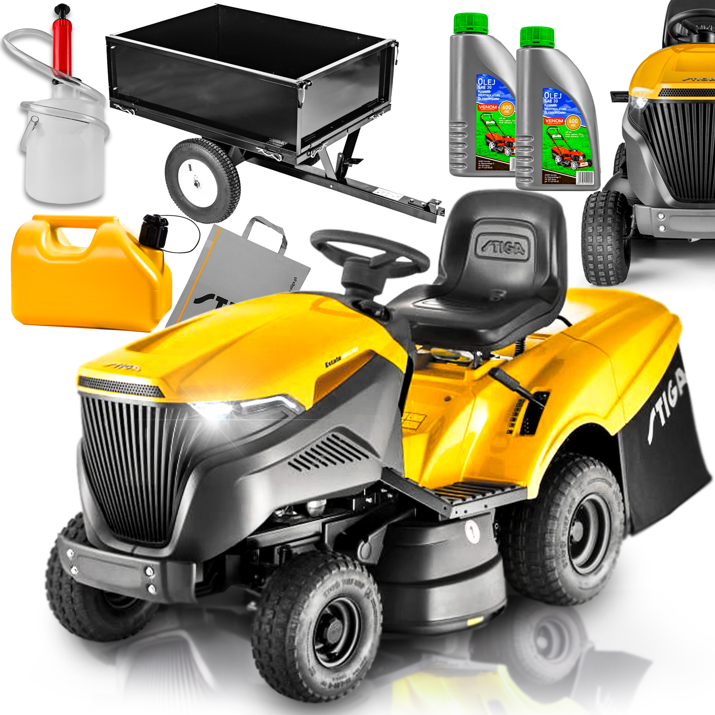 TRAKTOREK STIGA OGRODOWY TRAKTOR ST600 18KM 92CM ŚWIATŁA LED +PRZYCZEPKA XL