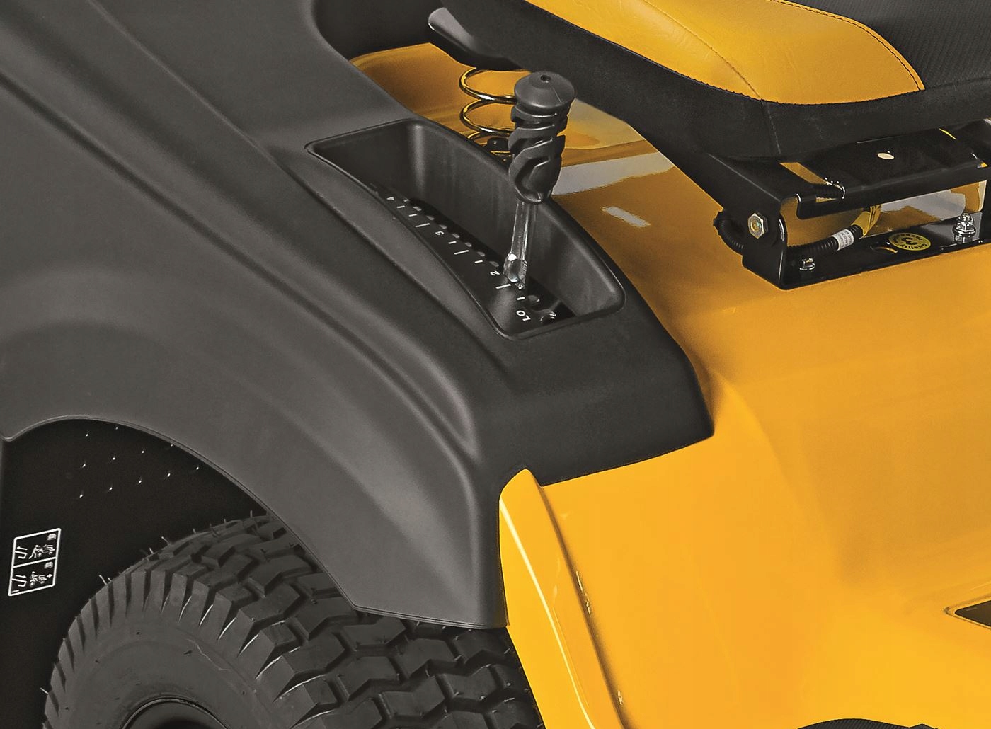 Завдяки центральному регулюванню висоти ви можете зручно змінювати висоту зрізу в діапазоні 25 - 100 мм одним рухом. Ергономічний важіль, розташований завжди в межах досяжності оператора, дозволяє регулювати робочу висоту косарки в залежності від місцевості, яку косять.
