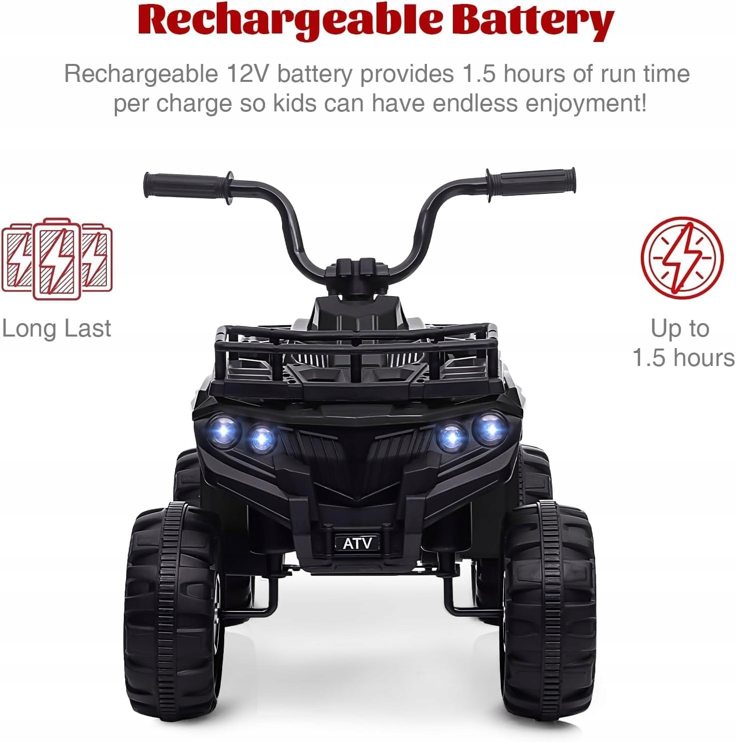 світлодіодні світильники для більшої забави: завдяки побудованому музичним функціям та миготливим світлодіодним світильникам цей електричний квадрат для дітей забезпечує захоплююче водіння, яке порадує наймолодшого. В той час як діти можуть насолоджуватися почуттям справжнього контролю за кермом.