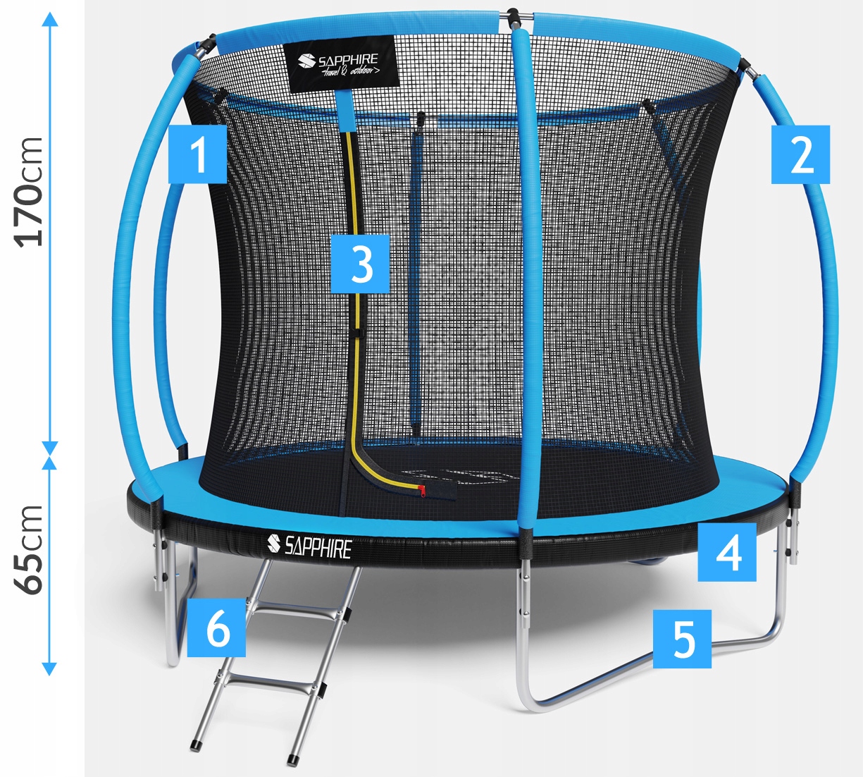 високий -клас батут сапфіру підготовлений спеціально для сезону 2024 року. Вони мають найвищу якість битви, вони стійкі до води та УФ -променів. ми додаємо драбину до кожного батуту в подарунок! Використовується: Для домашнього використання