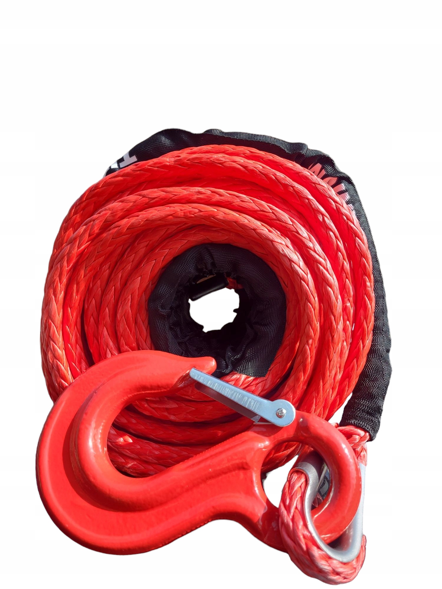 Універсальна синтетична мотузка довжиною 24 метри та діаметром 12 мм підходить для будь-якої лебідки від 12000 фунтів. Протягом багатьох років в електричних лебідках замість сталевого канату використовується синтетичний трос. На кінці каната є кожух і гак, а з іншого боку є вушко для кріплення до барабана лебідки. Синтетична мотузка характеризується надзвичайно високим співвідношенням міцності волокна до ваги, високою стійкістю до стирання та низьким вологопоглинанням. Мотузка м’яка, тому її легше змотувати.