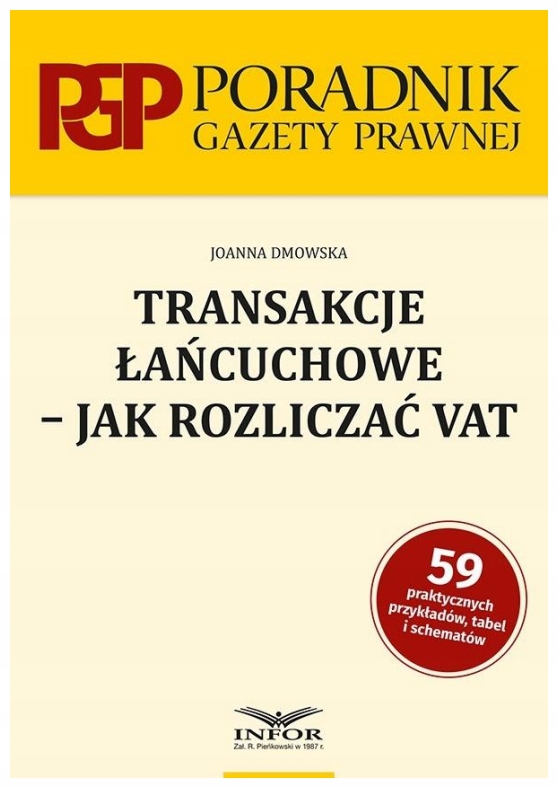 Оплачивая «Transakcje łańcuchowe - jak rozliczać VAT», вы можете быть уверены, что данное изделие из каталога «Финансовое право» будет доставлено из Польши и проверено на целостность. В цене товара, указанной на сайте, учтена доставка из Польши. Внимание!!! Товары для Евросоюза, согласно законодательству стран Евросоюза, могут отличаться упаковкой или наполнением.