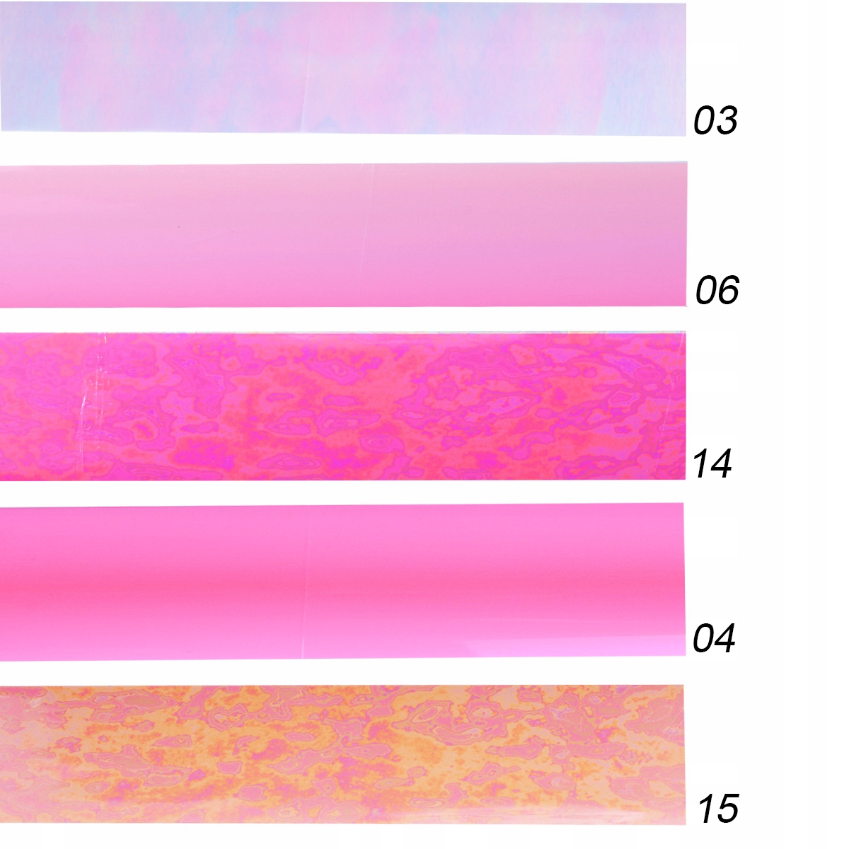 Фольга призначена для декорування натуральних нігтів, нафарбованих звичайним лаком, а також гелевих, гібридних або акрилових нігтів.