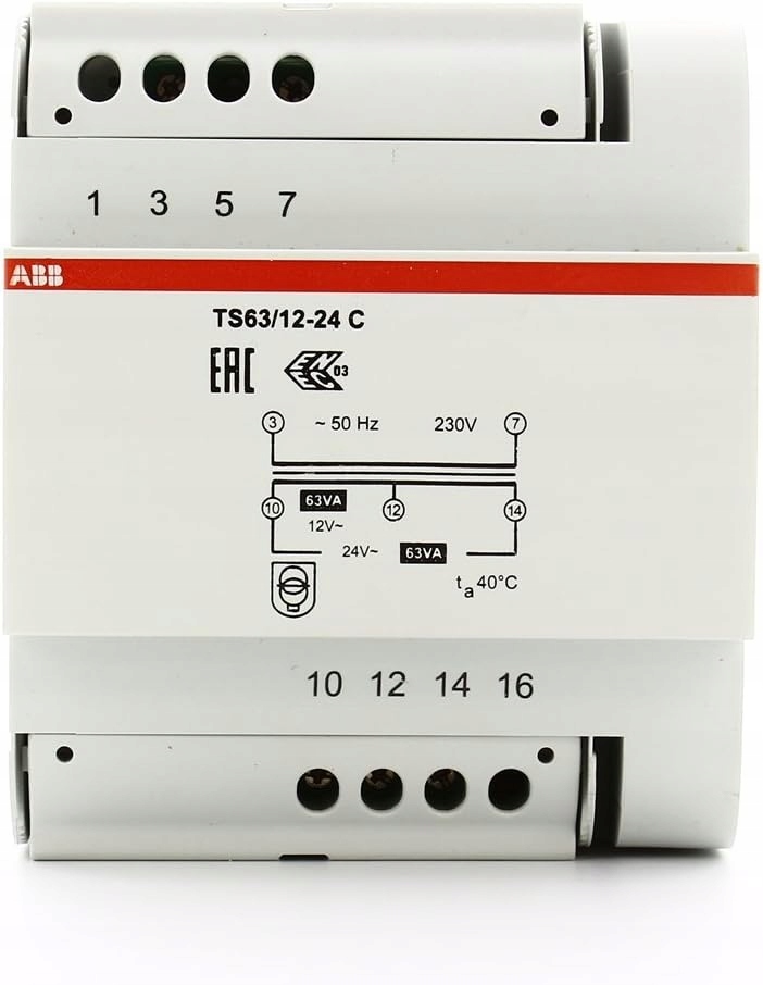 Трансформатор для DIN-рейки ABB TS63/12-24 C трансформатор 63VA 12-24V (M16)