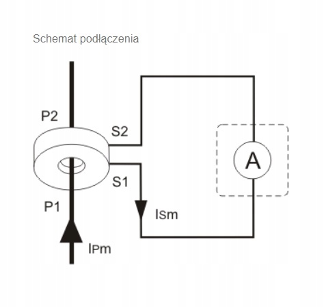 Як працює трансформатор струму TI-40? Кабель з виміряним струмом проходить через основний отвір трансформатора (P1/P2), що еквівалентно одному витку первинної обмотки. Клеми S1 і S2 вторинної обмотки підключаються до клем вимірювального кола контрольного або вимірювального приладу.