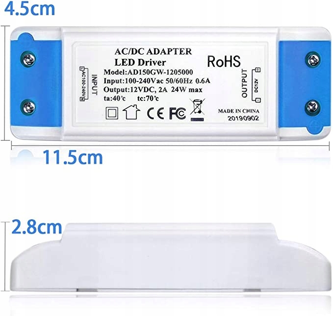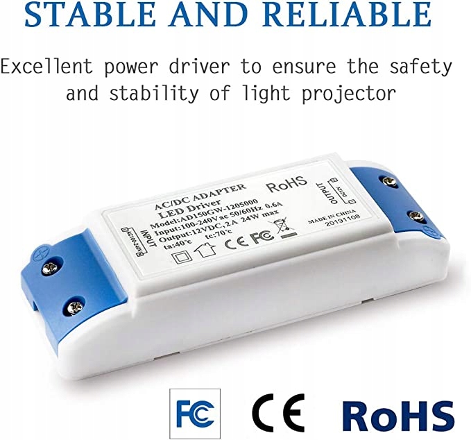 - Вихідна потужність -- Світлодіодний трансформатор постійної напруги 12 В постійного струму, 5 А, макс. 60 Вт. Щоб забезпечити надійність і довговічність цього виробу, не підключайте цей світлодіодний трансформатор 12 В до проектів, де напруга перевищує 12 В або їх потужність перевищує 60 Вт. Це небезпечно!