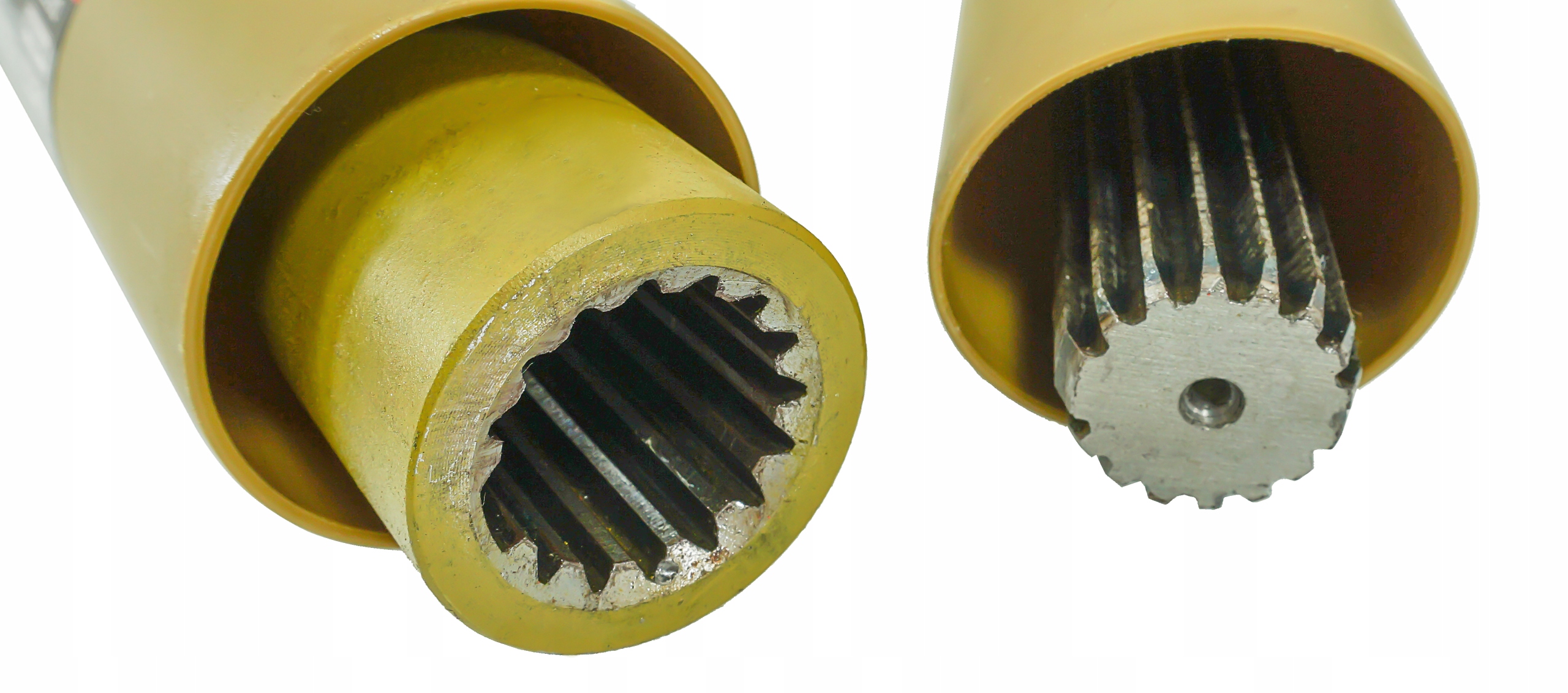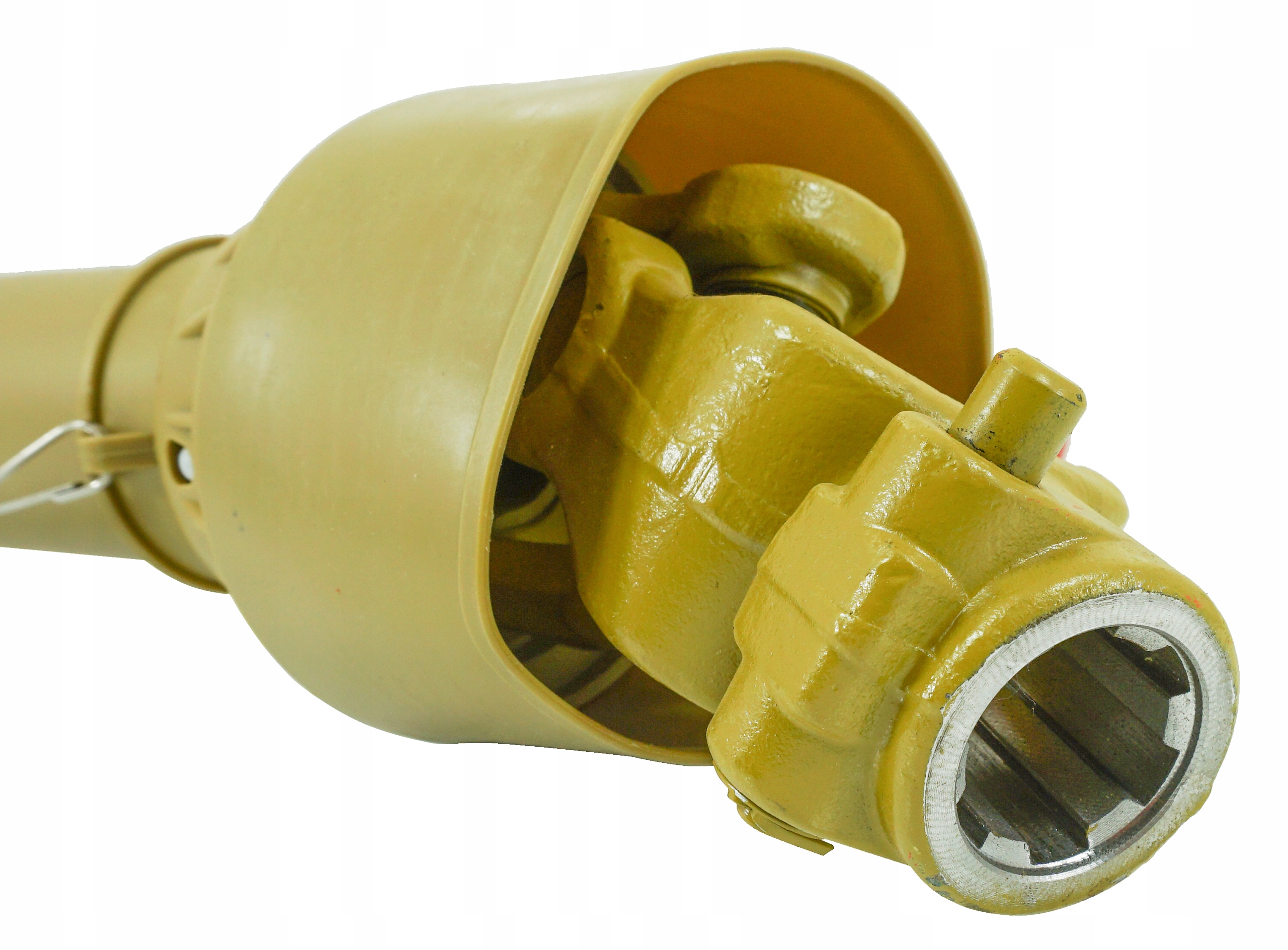 Телескопічна конструкція дозволяє плавно регулювати довжину валу відповідно до відстані між трактором і машиною, а шарніри дозволяють безпечно працювати під змінними кутами.