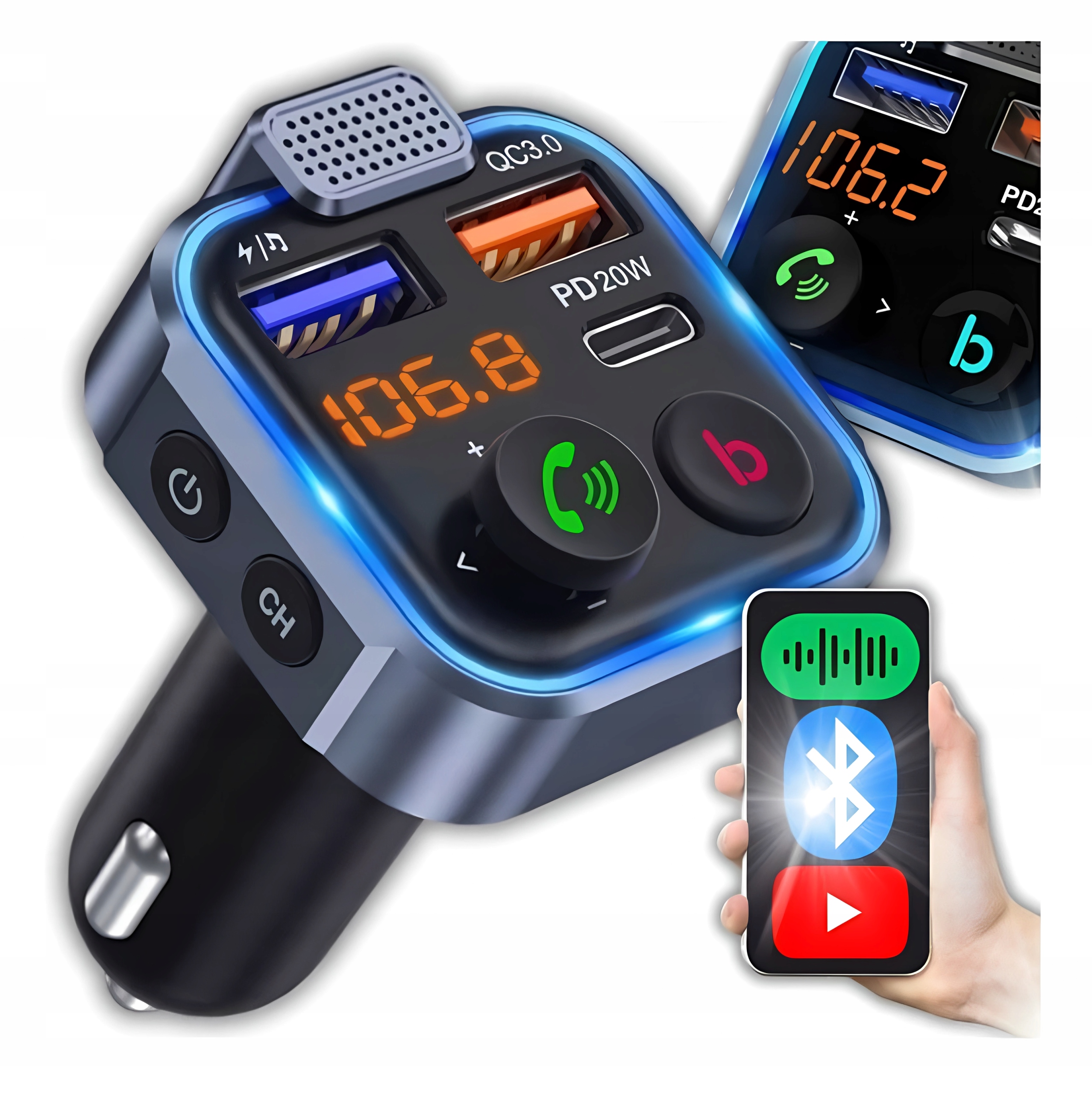 Трансмітер P5 автомобільний bluetooth аудіо FM BT швидкий зарядний пристрій 3x USB QC