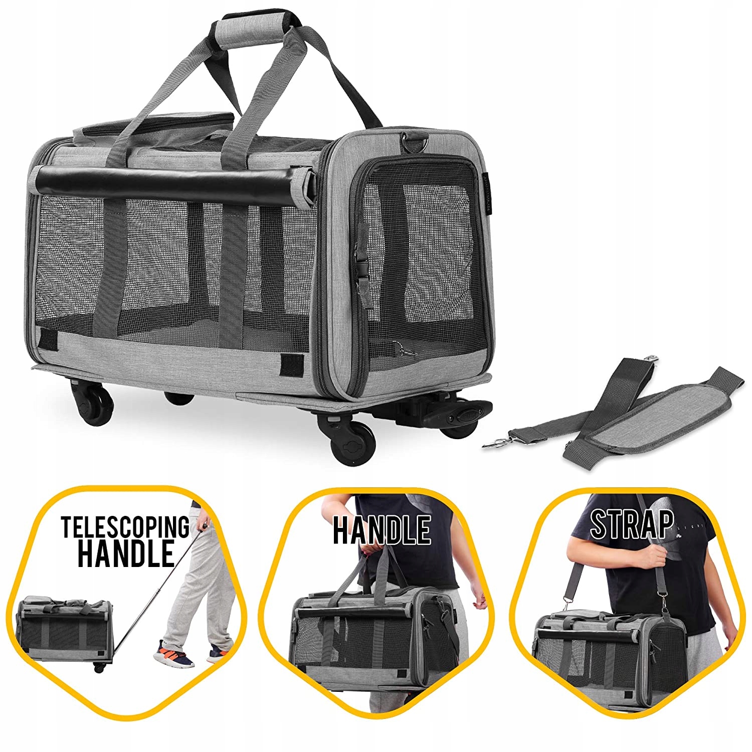 ПЕРЕНЕСКА ДЛЯ ТВАРИНОК - Знімна платформа з 4 колесами та телескопічною ручкою легко перетворює переноску на коляску. Платформа надійно кріпиться за допомогою високоякісної липучки. 3 РІЗНИХ СПОСОБИ ПЕРЕНОСЕННЯ - Телескопічна ручка, плечовий ремінь і ручка для перенесення забезпечують 3 легкі та зручні рішення для перенесення різноманітних щоденних потреб. КІЛЬКІ МІСЦЯ ДЛЯ ЗБЕРІГАННЯ - 1 велика кишеня ідеально підходить для безпечного зберігання речей, без яких ваш вихованець ніколи не обійдеться. МІЦНІ, МІЦНІ МАТЕРІАЛИ - ЧЕРЕЗЬ: тканина Оксфорд 600D з 4 вентиляційними сітчастими панелями, які забезпечують прохолодне середовище та легку видимість. ТЕЛЕСКОПІЧНА РУЧКА: стрижні з промислового алюмінієвого сплаву. КОЛЕСА: Високоякісні поліуретанові подвійні колеса забезпечують додаткову стабільність і довговічність.