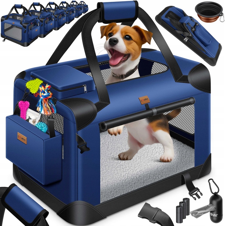 Транспортний пакет Lovpet для собак, коти з подушкою, миска, XXL, синій