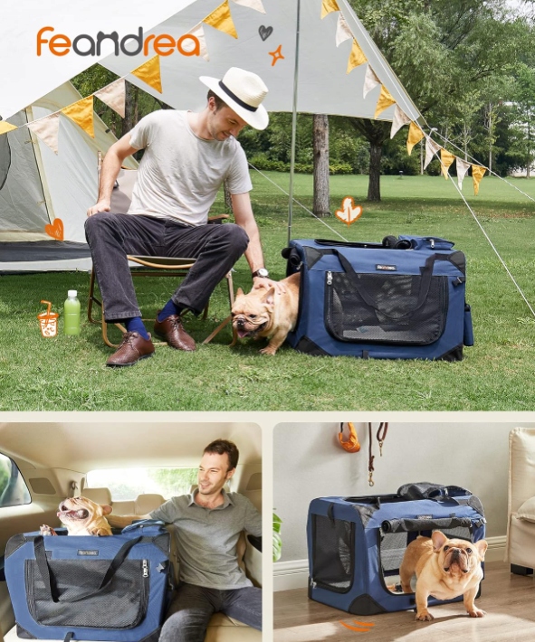 ➡️ Підходить для різних сценаріїв: Транспортна коробка для собак забезпечує вашому чотирилапому другу безпечне місце. Ви можете використовувати цей складаний ящик для собак під час кемпінгу, на задньому сидінні автомобіля під час подорожі, у готелі чи вдома