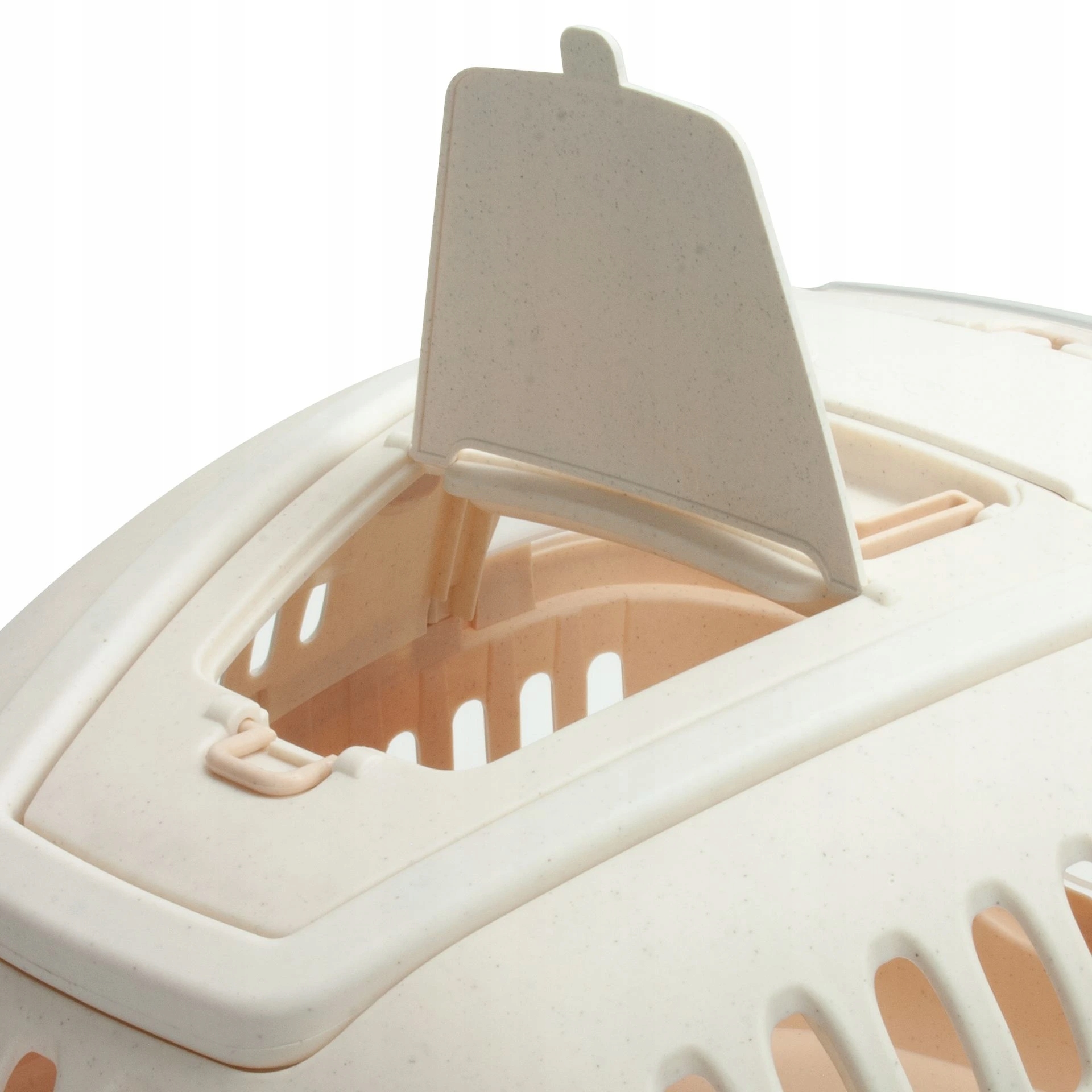 3) Знімний верхній купол з відкритим прозорим щитом, який дозволяє тварині бачити протягом усього транспорту. Це також дозволяє тварині звертатися до зовнішнього середовища. У верхній частині є також закрите вікно, через яке ви можете погладити свого вихованця під час транспортування та мати контакт з ним. Додатковий закритий простір для зберігання дрібних предметів залежно від ваших потреб (плечовий ремінь для перевозування коробки 13623, повідку, вакцинації, щітки або частувань). У верхньому куполі також є невелика ручка, що полегшує роботу, велика ручка для транспорту та два шви для фіксації ремінця на плечі.