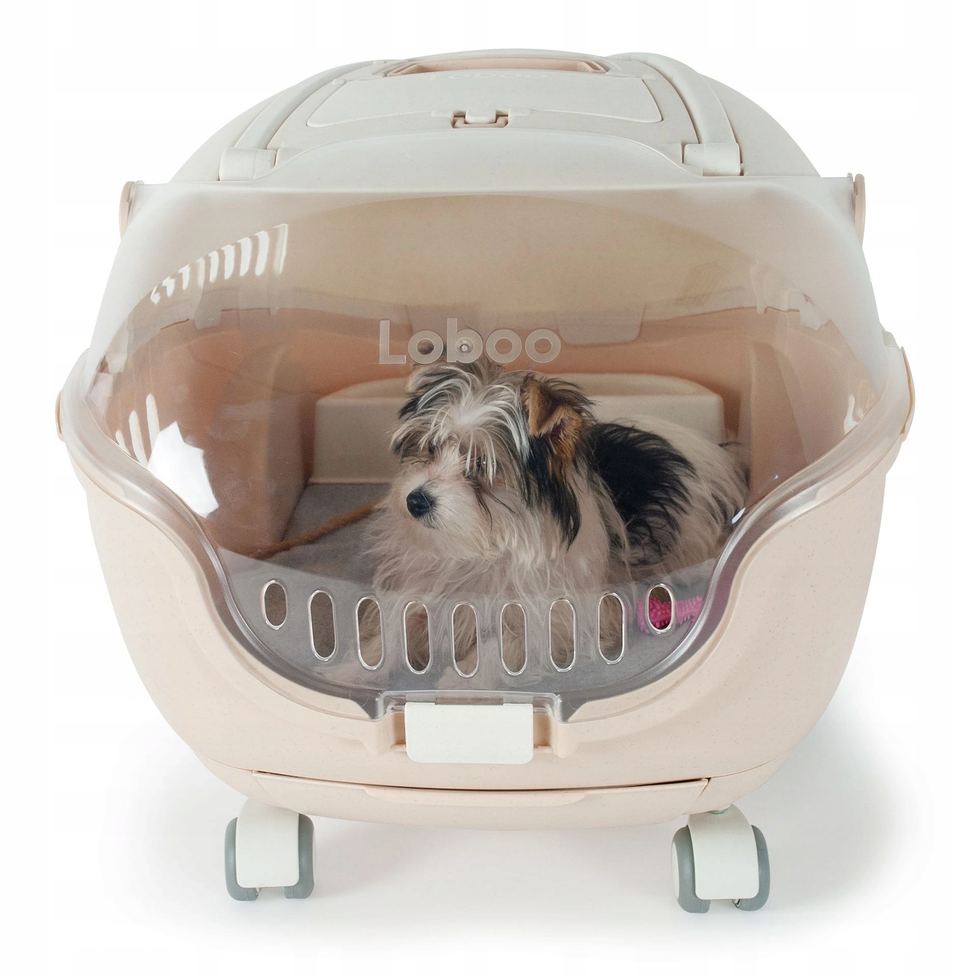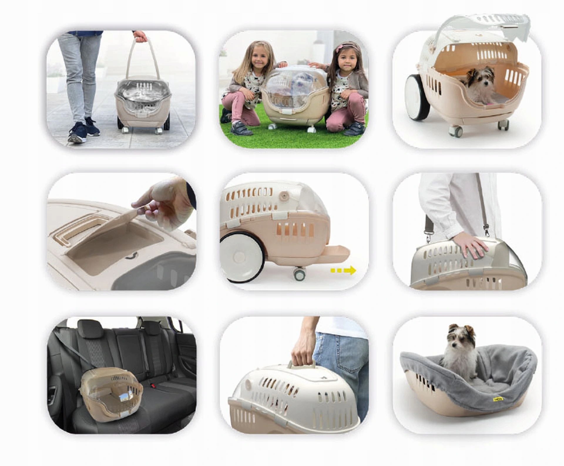 Елегантний, функціональний та практичний транспортер з ручкою на колесах та з ергономічною ручкою, яка полегшує транспортування наших домашніх тварин, які дуже швидко з відповідними аксесуарами (матрац або підкладеною базовою кришкою) можуть бути перетворені на домашній лімб і, таким чином, транспортувати домашню тварину в добре відомий йому і до якого він використовується. Це дуже важливо насамперед під час транспортування хворих тварин. Але навіть звичайна подорож для деяких тварин може бути напруженою, і таким чином стрес для подорожей дуже усунений. Велика перевага полягає в тому, що навіть під час будь -якого короткого або довшого перебування поза вашим домом тварина не втрачає свого відомого притулку, і його власник не повинен одночасно транспортувати багато інших речей.
