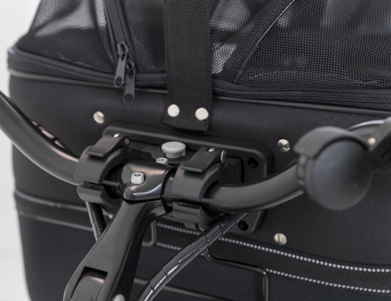 Високоякісна переноска Trixie для перевезення собаки чи кота на кермі велосипеда. Переноска має форму жорсткого мішка, прикріпленого до рами, прикріпленої до керма. Гарантує максимальний комфорт і безпеку для тварини під час велосипедних подорожей. Переноска має зручну ручку, тому її також можна використовувати як сумку або переноску. У комплект також входить дощовик, який захистить тварину, що транспортується, від дощу.
