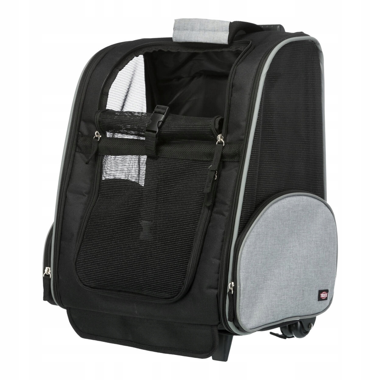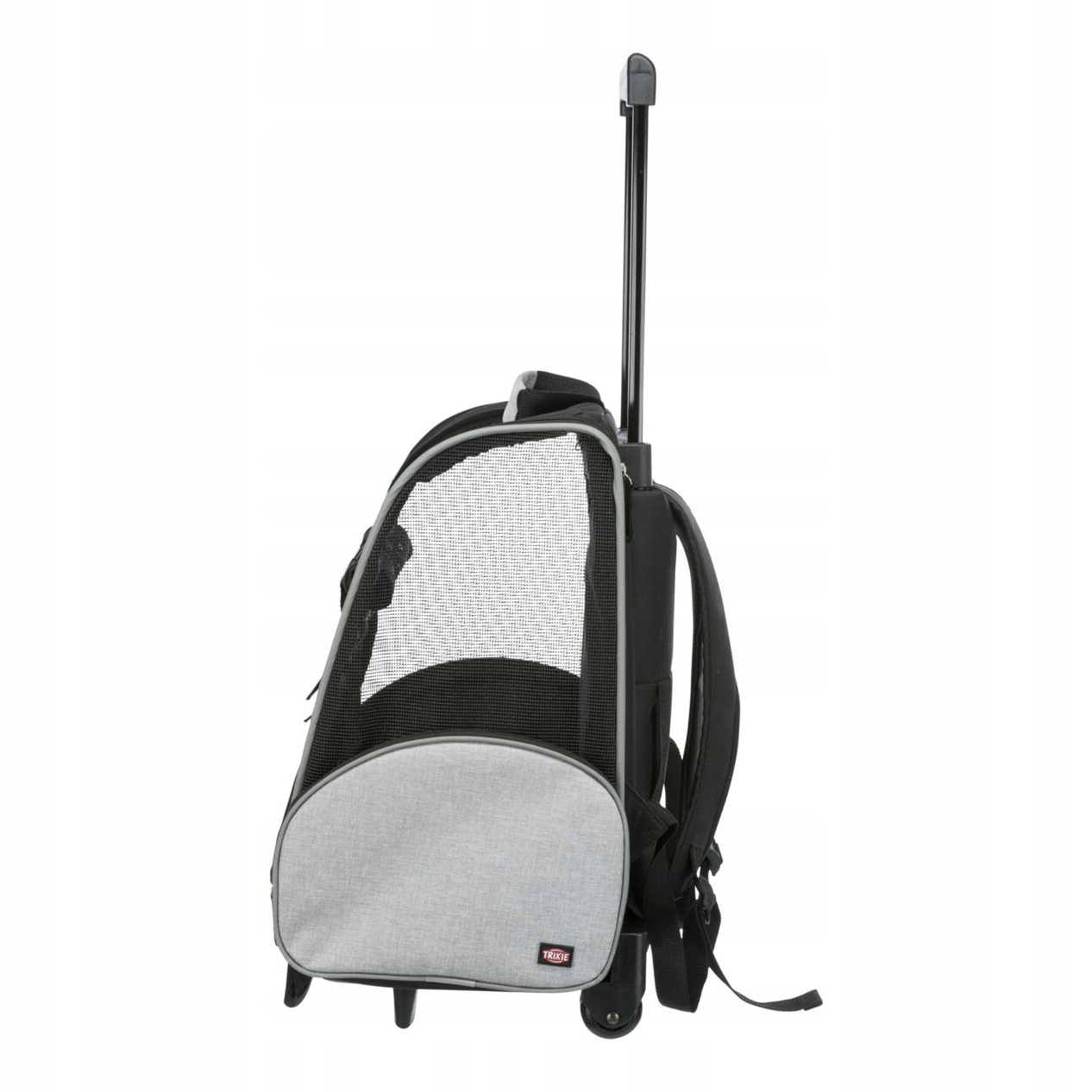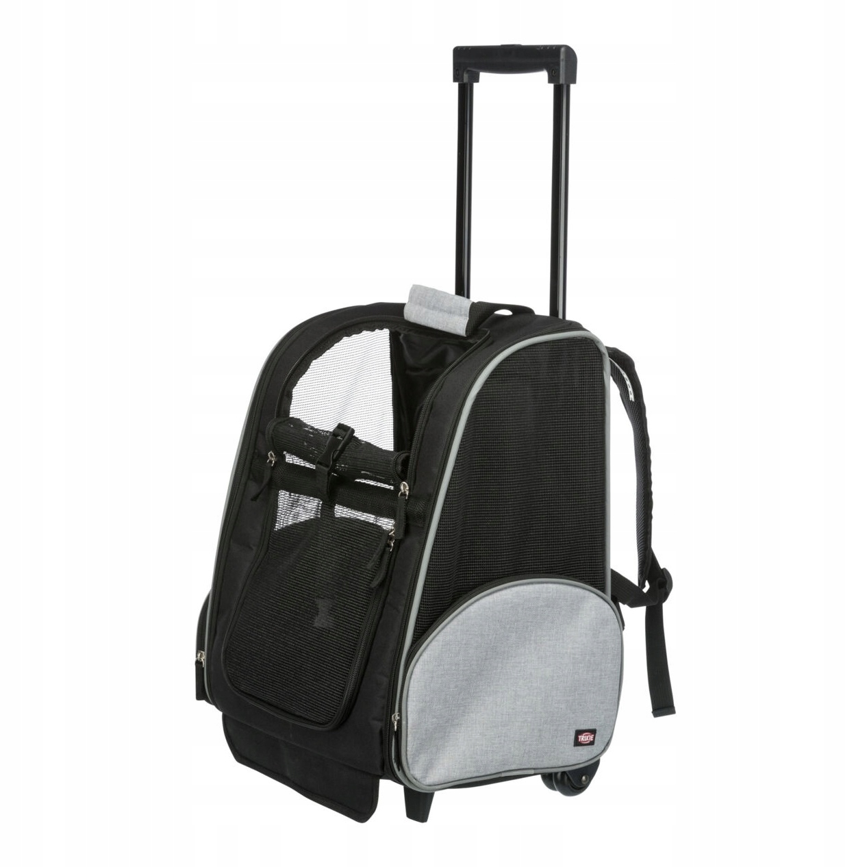 Сумка на колесах - транспортер - це універсальний спосіб рухатись із собакою. Його можна використовувати як рюкзак і оснащений повністю складним телескопічним тримачем. У ньому є вхідні двері, зовнішні кишені, інтегрована коротка повідець і підкладена основа. Виготовлений з поліестеру забезпечує комфорт та безпеку під час подорожі.