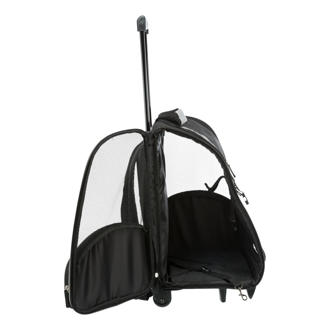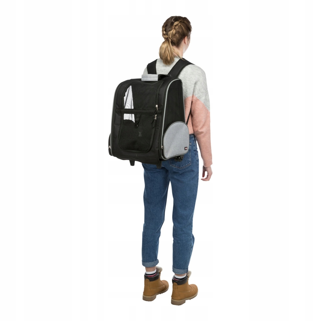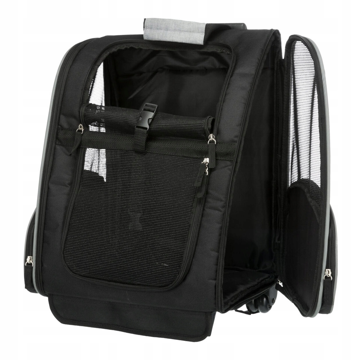 Сумка на колесах - транспортер - це універсальний спосіб рухатись із собакою. Його можна використовувати як рюкзак і оснащений повністю складним телескопічним тримачем. У ньому є вхідні двері, зовнішні кишені, інтегрована коротка повідець і підкладена основа. Виготовлений з поліестеру забезпечує комфорт та безпеку під час подорожі.