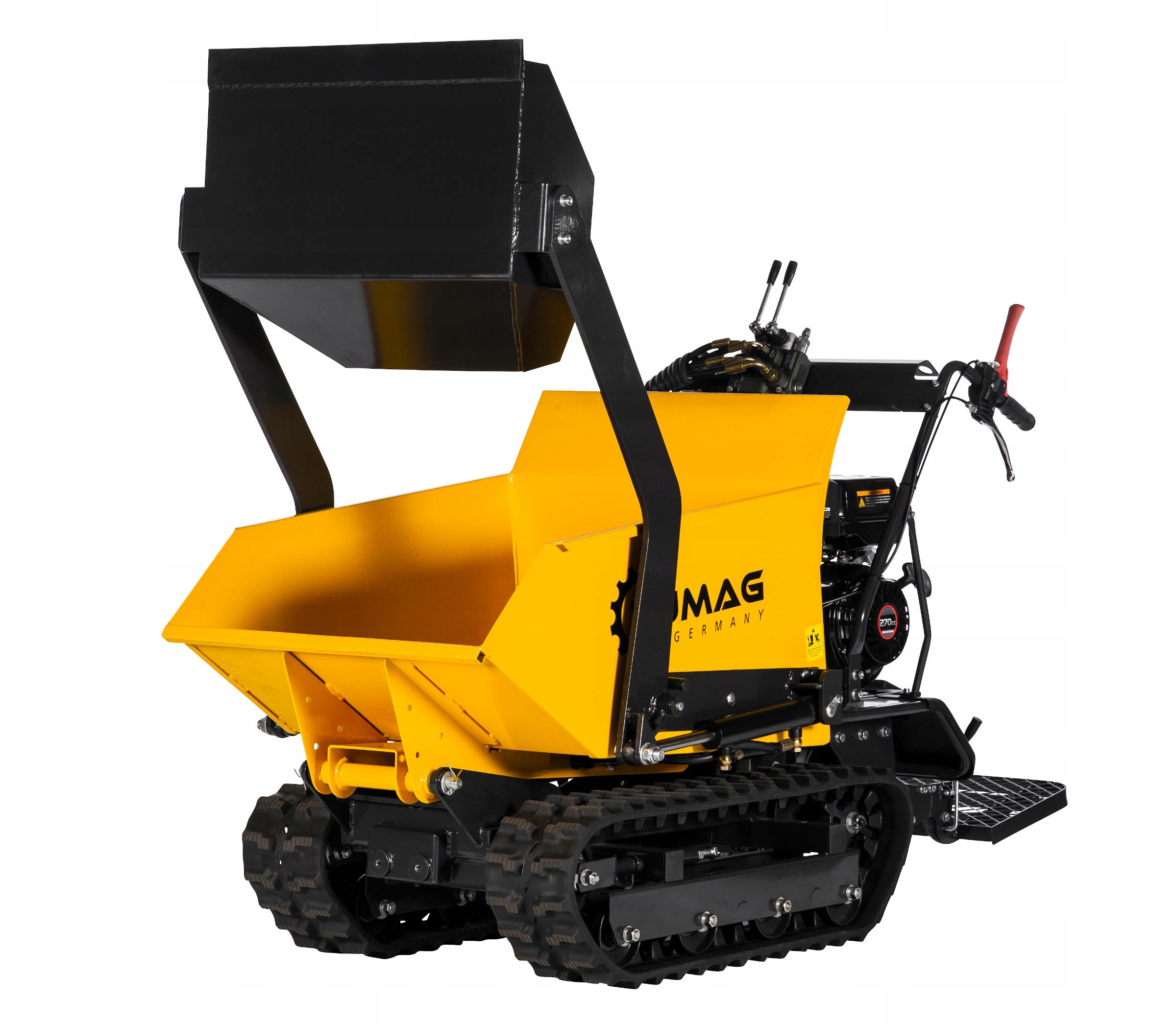 Міні-самоскиди Lumag Germany відмінно працюють у найскладніших умовах завдяки своїй міцній конструкції та високоякісним матеріалам. Конструкція самоскидів дозволяє забезпечити високу ефективність і економічність. Гусеничний міні-самоскид MD500H-PROS з гідравлічним перекидачем, завдяки своїм габаритам, може вільно використовуватися в будівлях і у вузьких проходах і проходах. Вантажопідйомність становить 500 кг (212 літрів).