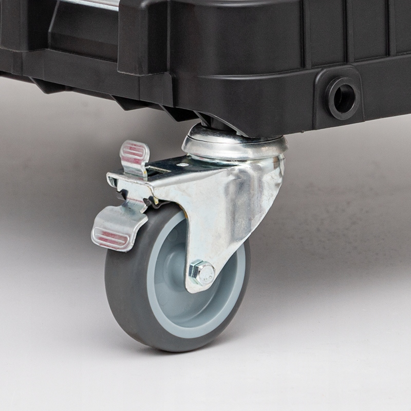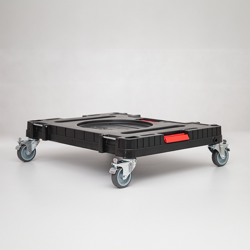 Транспортна платформа забезпечує комфортне маневрування рівною поверхнею завдяки 4 поворотним колесам, кожне з яких має гальмо. Має 3 поліамідні роз'єми для підключення до ОДНОГО системного модуля і зручну сходинку ззаду для маневрування. Платформа оснащена місцем для ковша та 4 кронштейнів для кріплення. Виготовлений з армованого пластику, витримує максимальне навантаження 120 кг.