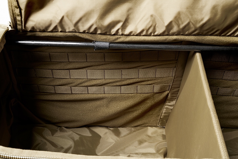Чотири внутрішні стіни оброблені м'яким матеріалом, а дві з них додатково мають великі панелі MOLLE. Обидва рішення дозволяють прикріпити кишені та органайзери, як на липучках, так і на ременях MOLLE.