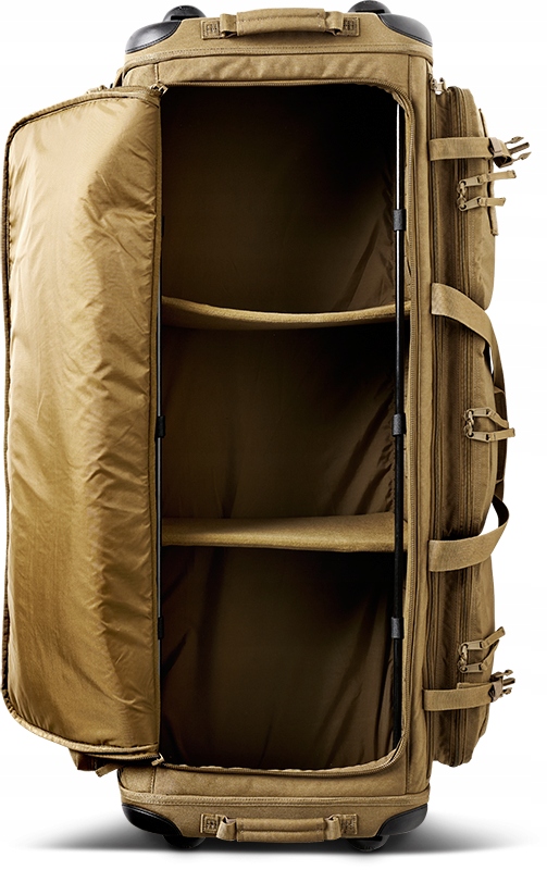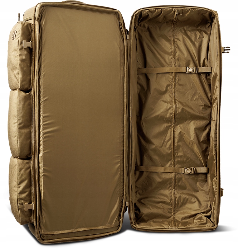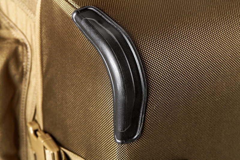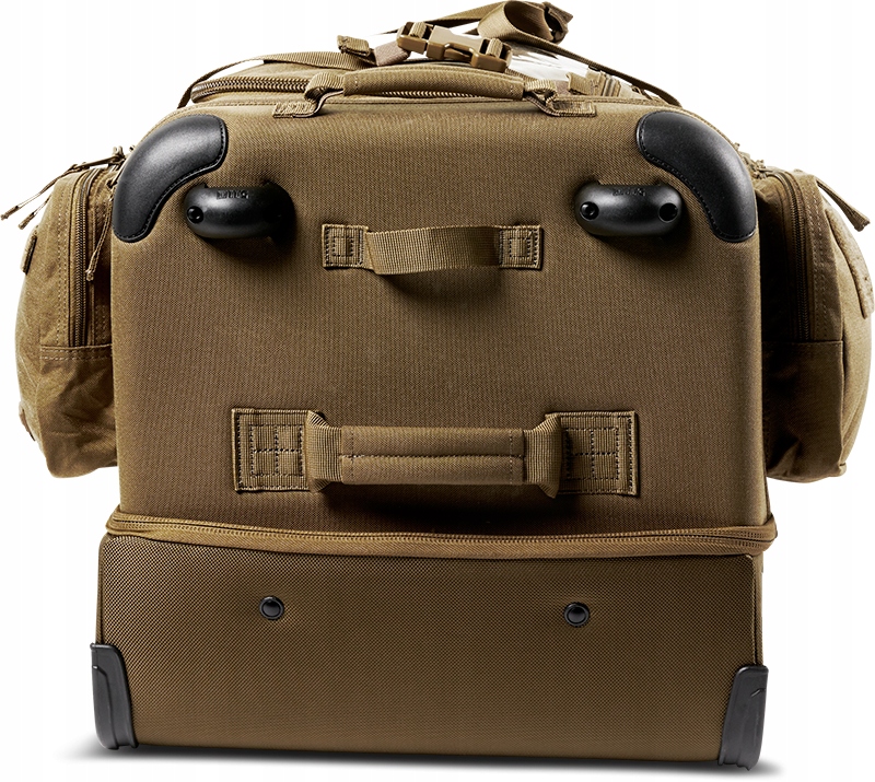 Завдяки місткості та розмірам система транспортування сумки складається з високоякісних коліс та висувної телескопічної ручки. Крім того, дно сумки, кути та навколо коліс посилені для посилення всієї конструкції та захисту її під час інтенсивного використання. Як колеса, так і посилення можна легко замінити, коли вони надмірно зношені.