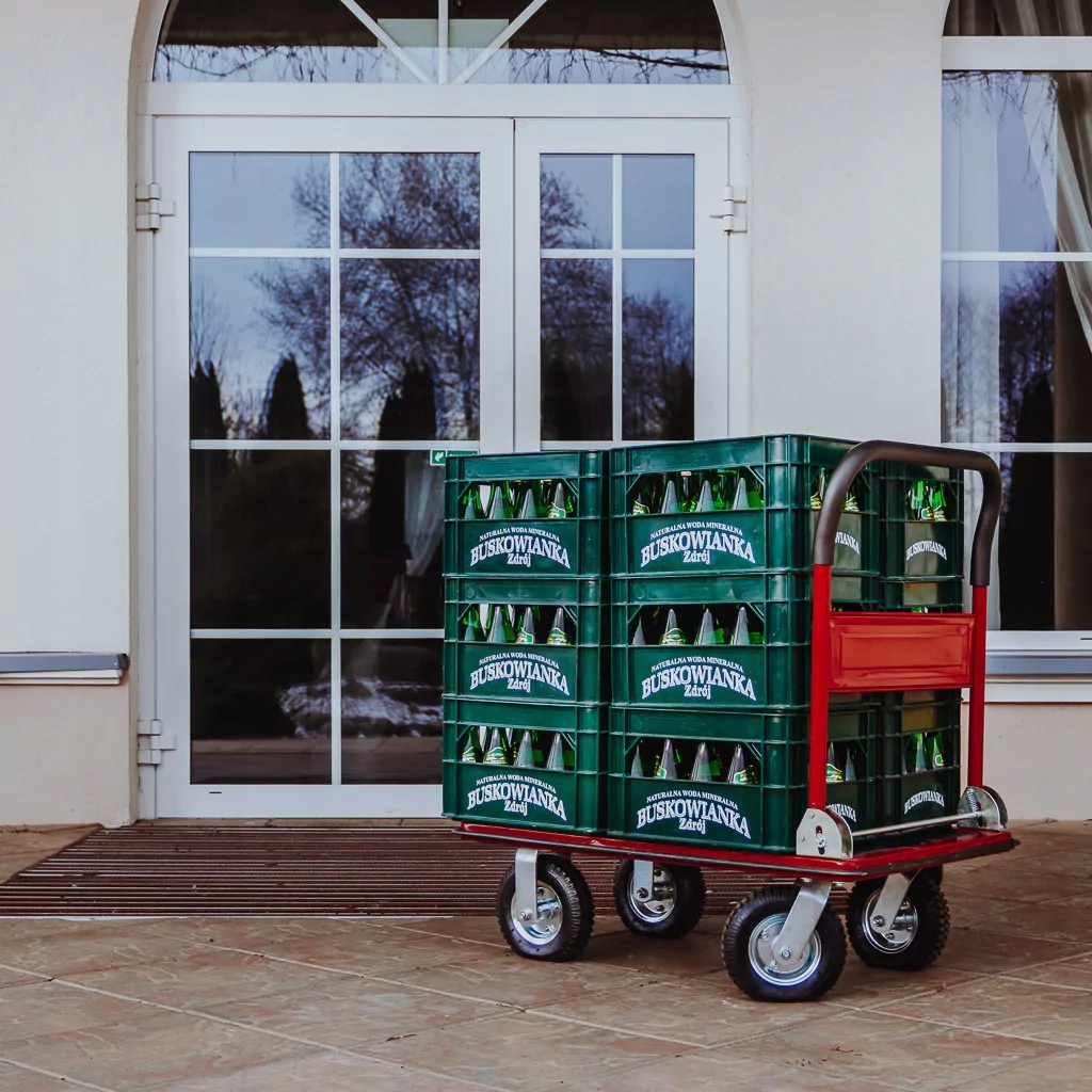 з мега-м транспортними візками мають два передні кружки та два відповідні постійні (діаметром 12,5 см), завдяки якому маневрування візок легко навіть при високому навантаженні. Поліуретанові колеса дуже довговічні, вбудовані на підшипники.