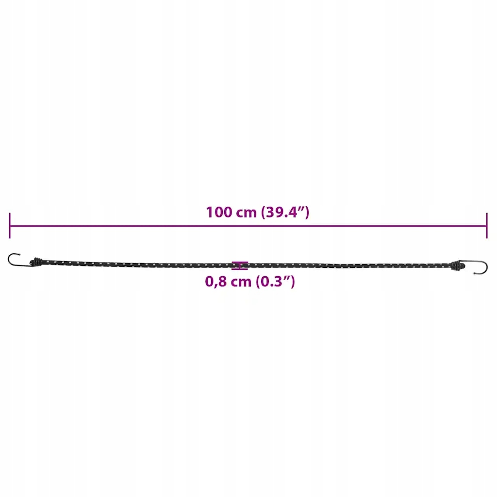 Гнучкий кабель з гачками легко надіти та зняти, завдяки якому він буде ідеальним вибором при прикріпленні та організації предметів. Як результат, він забезпечує чудову гнучкість та стійкість до зносу, завдяки якому він дуже міцний і стійкий до тріщин. Крім того, це світло, яке полегшує його передачу та зберігання. Більше того, він також може бути використаний для прикріплення наметів, брезентів та банерів, а також додаткового захисту багажних ременів. Мотузки: 8 мм