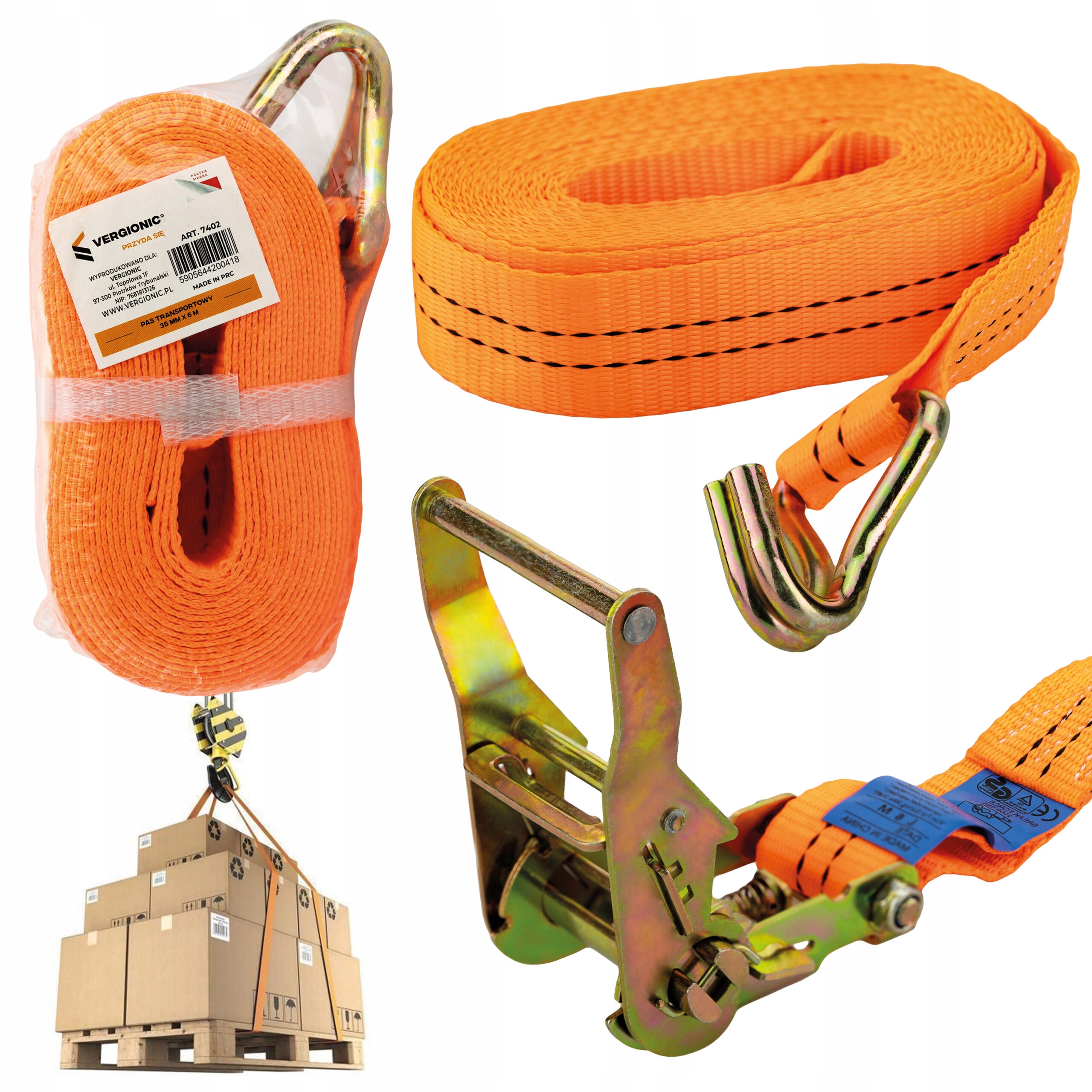 Ремінь довжиною 6 метрів і натягувач довжиною 45 см із пряжкою, що затягується, завершується міцними гачками, які слід прикріпити до двох точок кріплення. Виготовлений з високоякісних матеріалів. Ремінець м'який і адаптується до різних форм предметів.