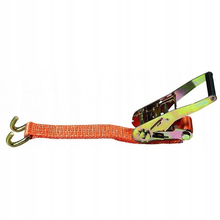 Поліестеровий ремінь витримує робоче навантаження 2500-5000 даН. Довжина стрічки 8,5 м. Натягувач/розкритий гак розміром 50 мм.