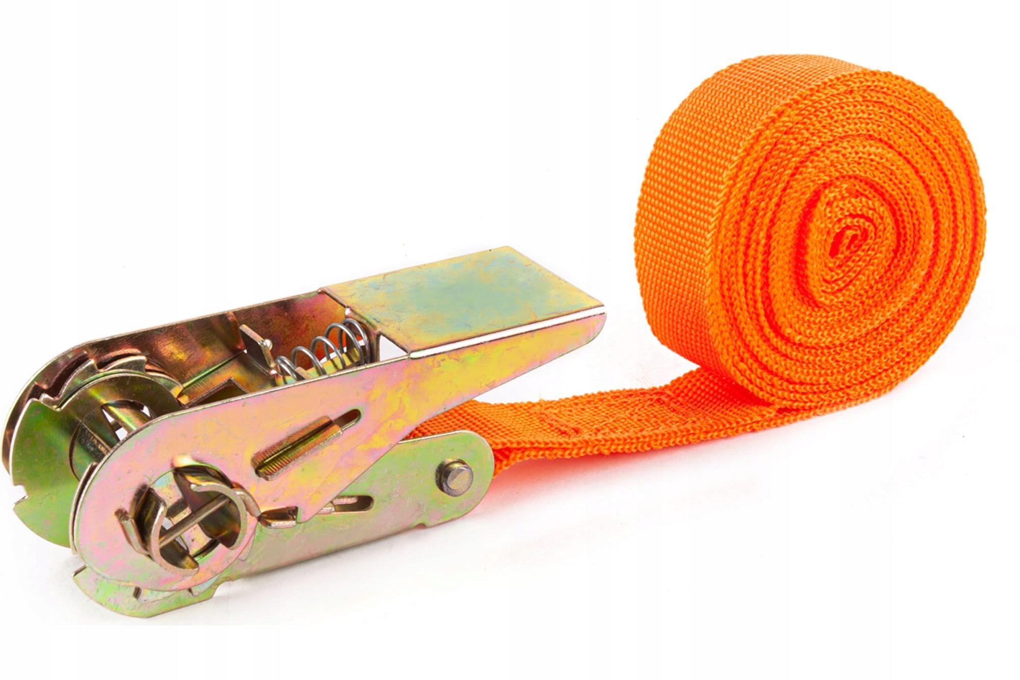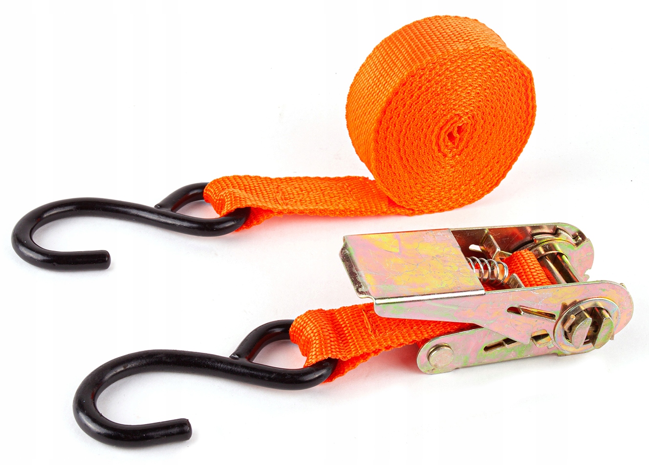 ремінь довжиною 4 метри та 30 см натягувача з в’яньою пряжкою, вони закінчуються сильними гачками, які слід прикріпити до двох точок кріплення. виготовлені з високоякісних матеріалів. Ремінь м'який і адаптується до різних форм предметів. Він характеризується великою силою.