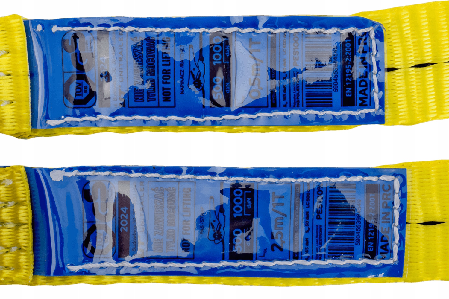 Транспортний пояс має прямий 0,5 тонни (500 дан), це максимальна сила, яку ремінь може переносити при встановленні, тобто безпосередньо з точки до точки. Це значення, як правило, наполовину більше, ніж міцність на обгортання, і визначає максимальне безпечне навантаження з прямим напруженням ременя. Слід пам’ятати, що для забезпечення безпечного транспорту навантаження слід забезпечити симетрично, а це означає, що мінімальна кількість ременів, прикріплених у прямій системі, становить 2 штуки. Це рішення забезпечує навіть розподіл сил та стабільну іммобілізацію навантаження під час транспортування.