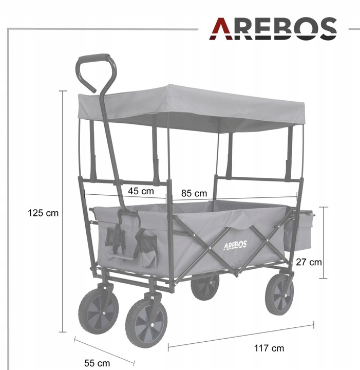 Аребо -еко -складна візка - з дахом - транспортний візок - сірий