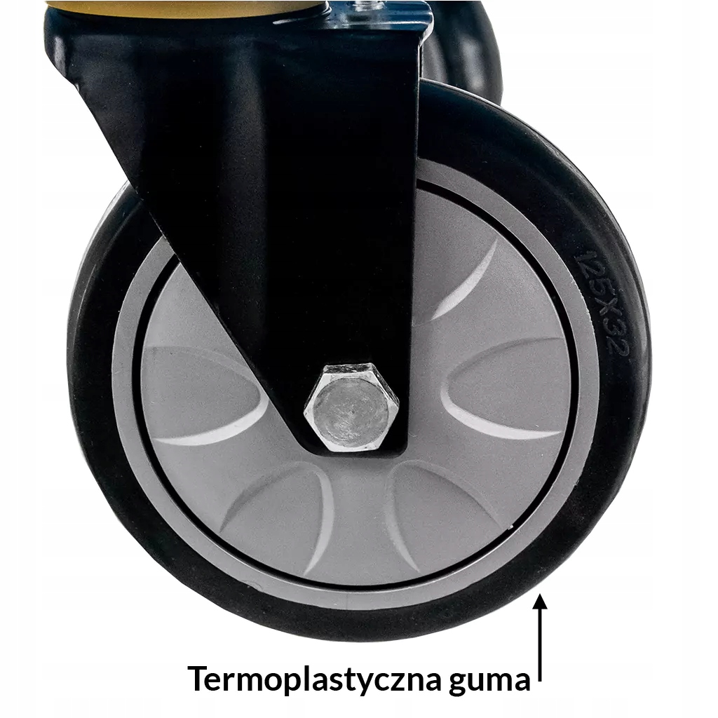 Колеса виготовлені з термопластичної гуми - матеріалу, стійкого до стирання. Додатковою перевагою є те, що вони встановлені на підшипниках - підвищена довговічність.