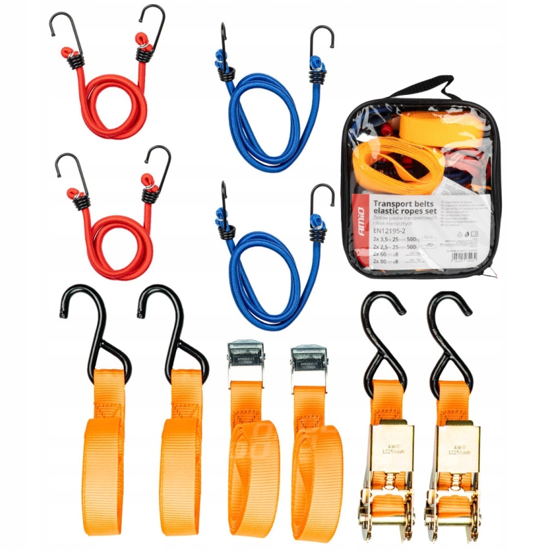 - ✔️ 2x Транспортний ремінь з натягувачем 3,5 м x 25 мм x 500 кг