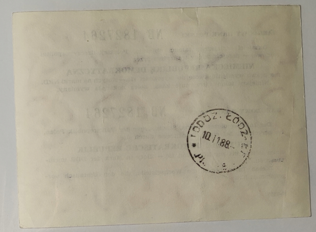 Транзитний купон NBP 150 злотих 1988 для Німеччини, НДР, марки серії NB
