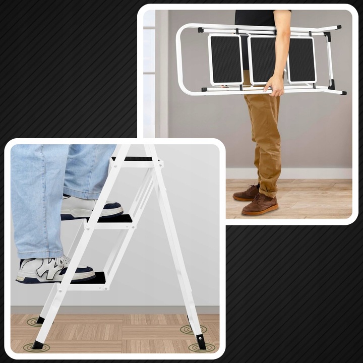 Це 3-ступінчасте складання драбина з протиковзкими ручками, килимки – незамінний інструмент у кожному домі.