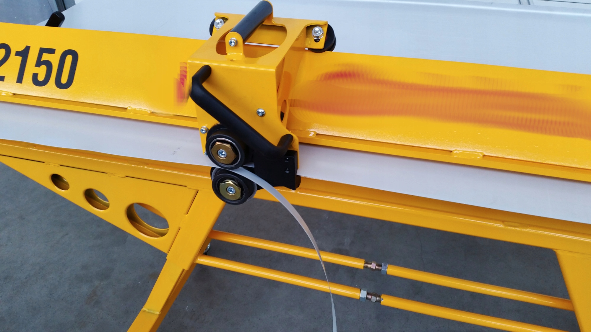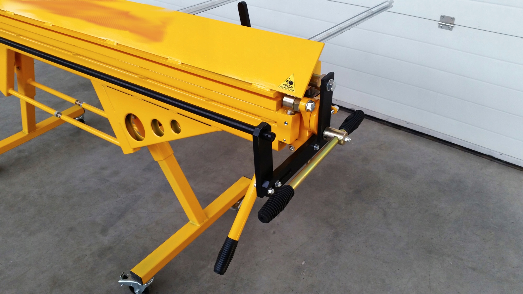 - ЗАДНІЙ СТІЛ, ОБЛАДНАНИЙ ОПОРАМИ (1000 мм) - дозволяє розміщувати листовий метал і вільно його переміщати. Його можна використовувати як місце для укладання листів металу. Оснащений шкалою, яка дозволяє точно позиціонувати зігнутий і розрізаний листовий метал.
