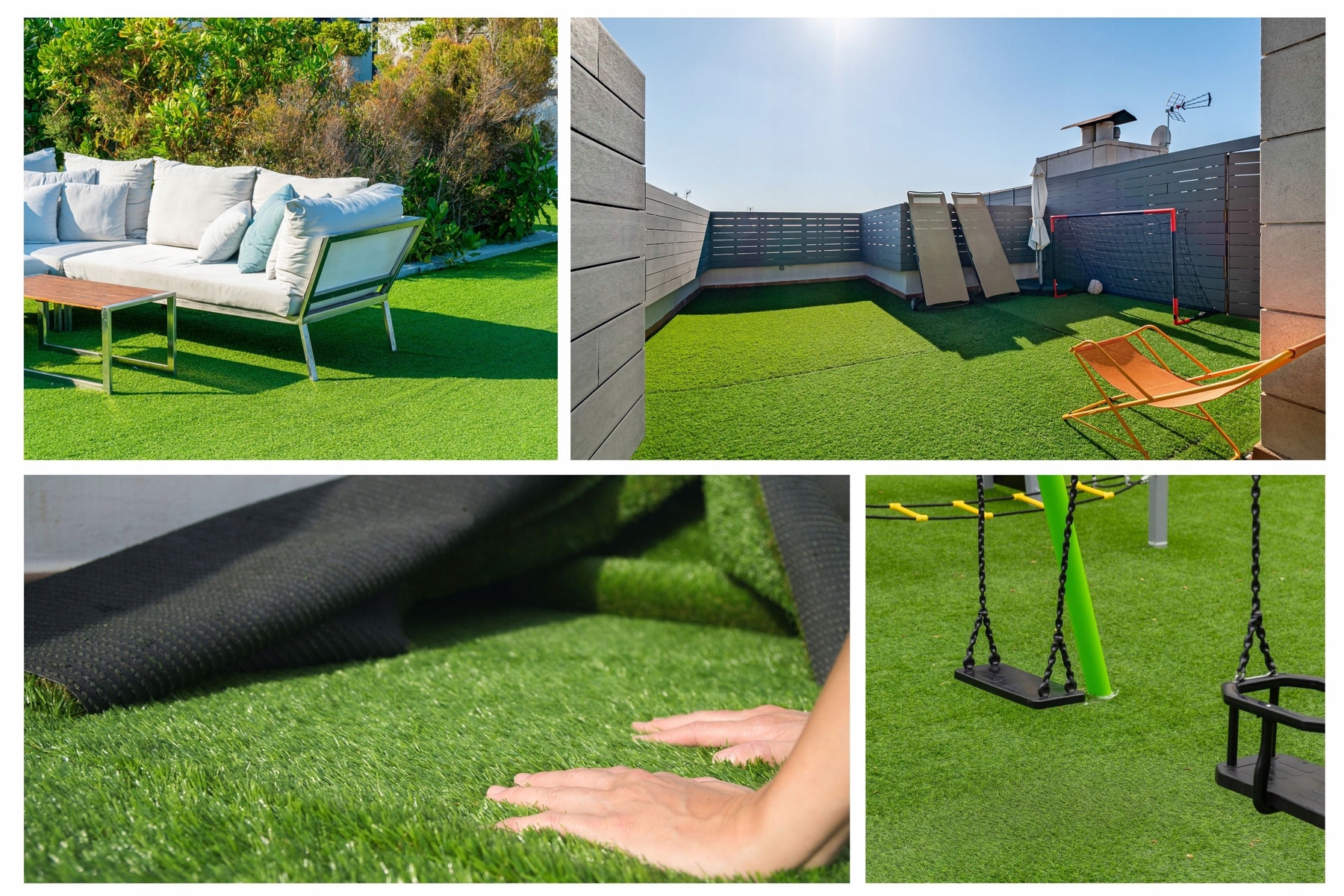 - Характеристики: щільний, високий і ніжний, імітація натуральної трави, м’який і приємний на дотик, стійкий до ультрафіолетового випромінювання, дружній до дітей і тварин, екологічно чистий, без вмісту свинцю та кадмію