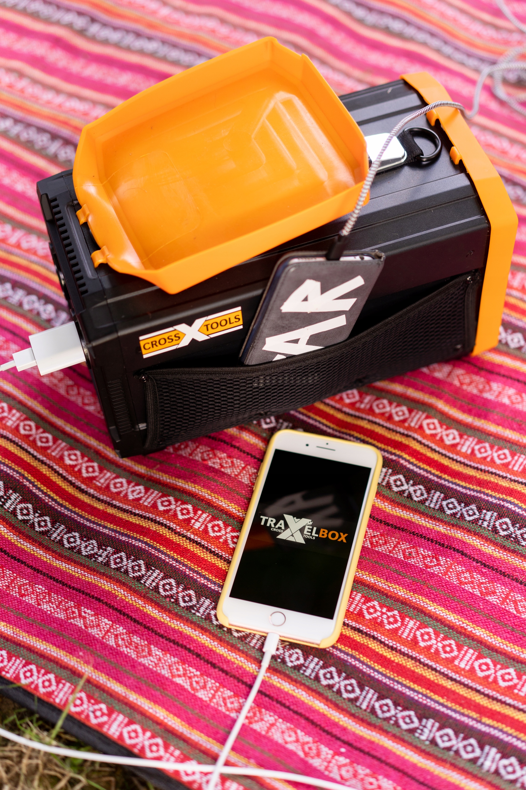 TRAVELBOX оснащений потужним літій-іонним акумулятором 120 000 мАг і багато різних розеток для живлення звичайного обладнання, тож його можна використовувати як надійний накопичувач енергії, ідеальний для фестивалів, кемпінгу, поїздок на ділянку чи кемпінгу, подорожей на автомобілі чи як джерело аварійного живлення.