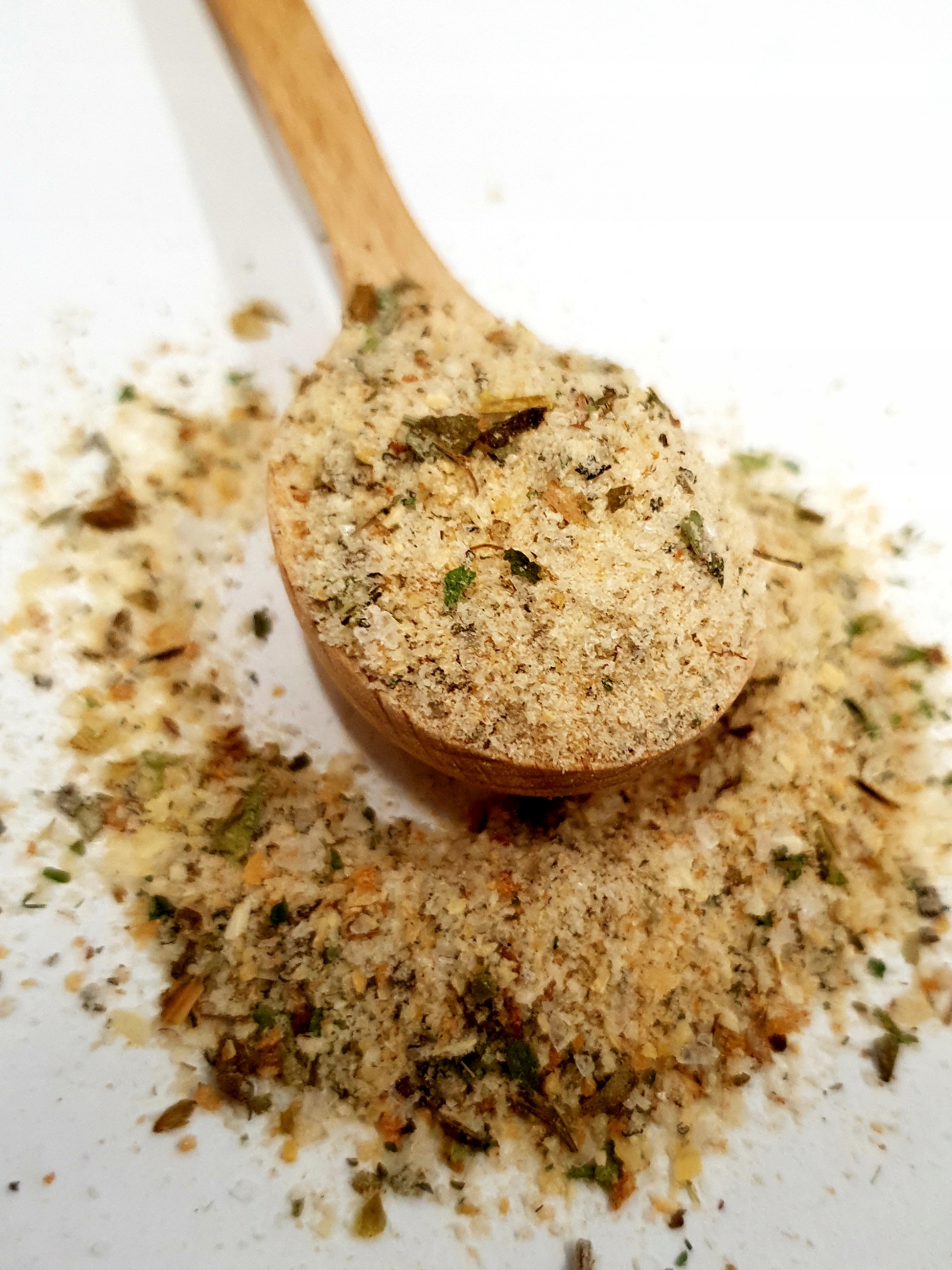 Це суміш панірувальних сухарів і трав, які традиційно використовуються для рибних страв. Не містить хімічних підсилювачів смаку! Склад: панірувальні сухарі, лист кропу, шавлія, орегано, базилік, петрушка, кислота лимонна, цибуля, часник, перець білий, сіль кам'яна.