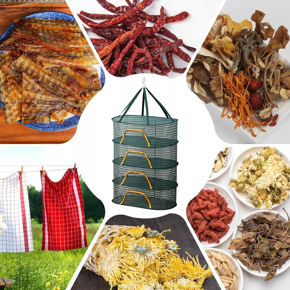 ✅ Затриманий матеріал: Трав'яна сушарка виготовлена з високоякісного поліестеру, з побудованими дротяними петлями на кожному шарі, що забезпечує міцну підтримку та відмінну поведінку форми.